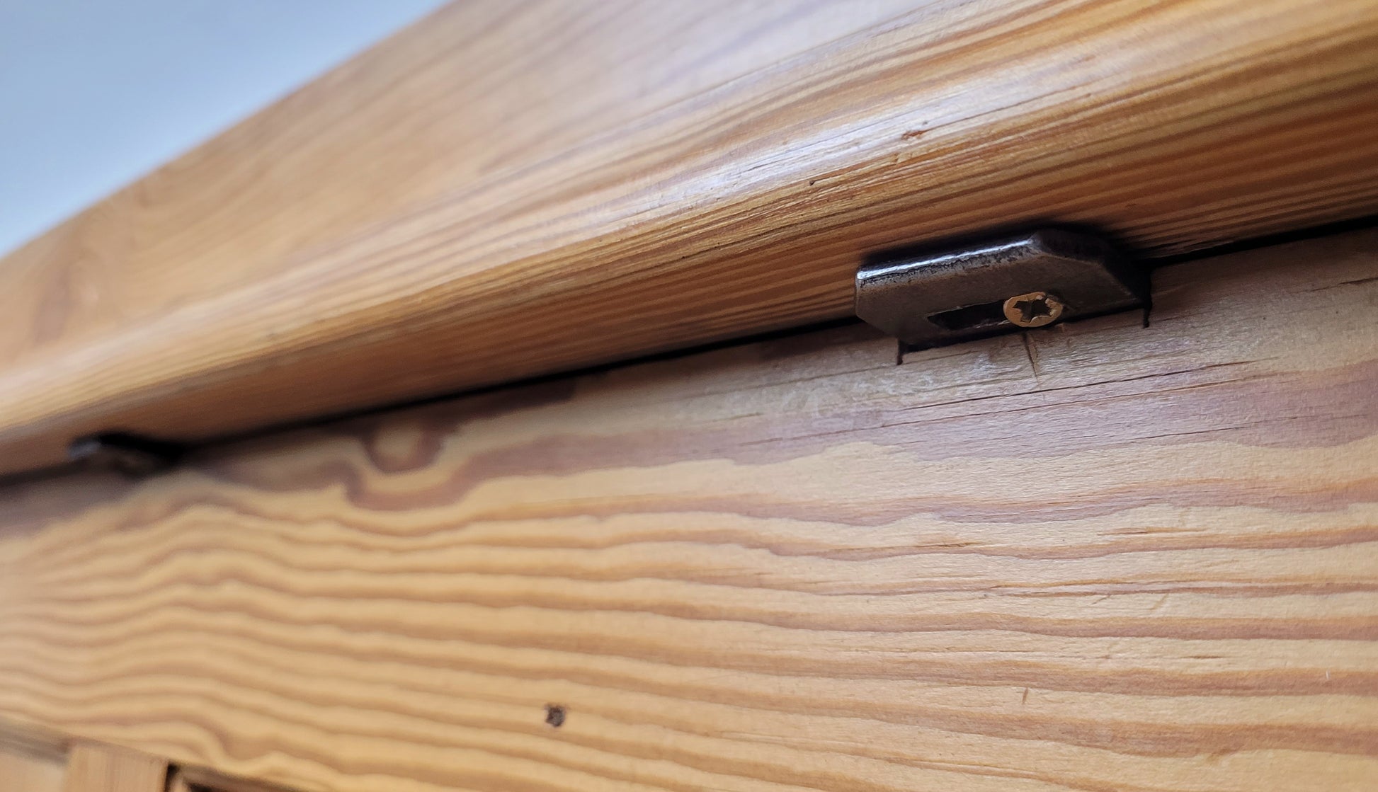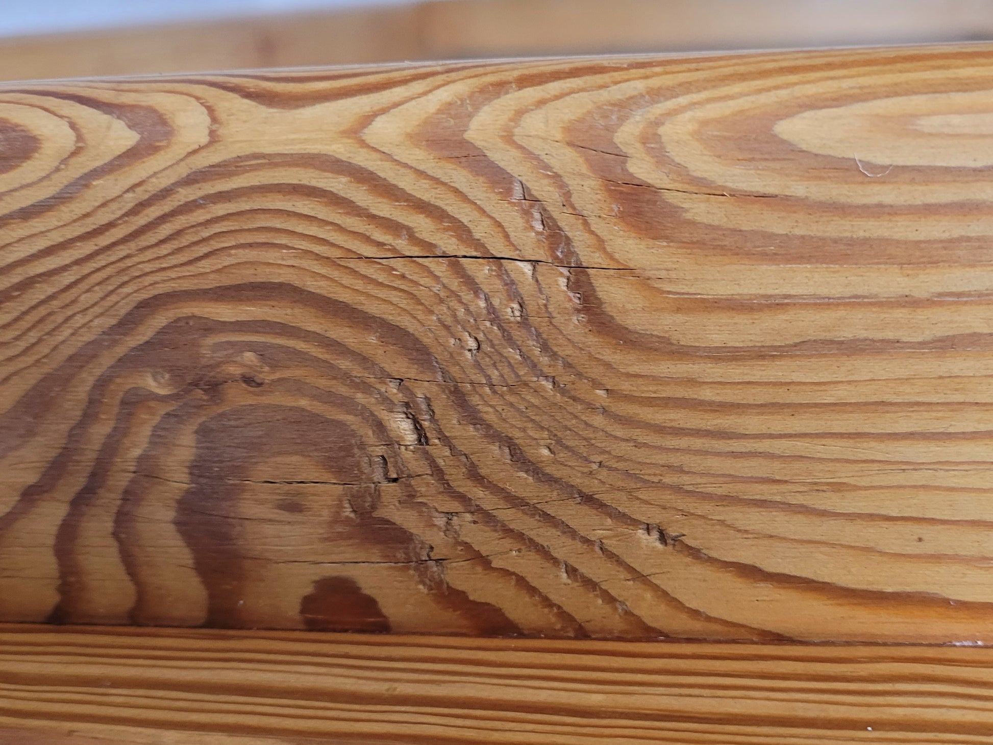 The pine chair has a crack to the upper backrest rail.