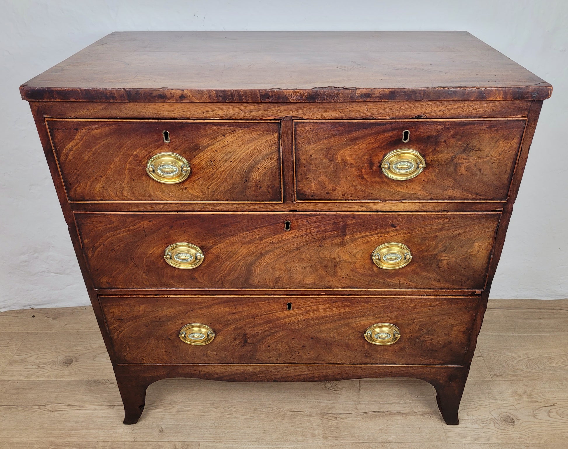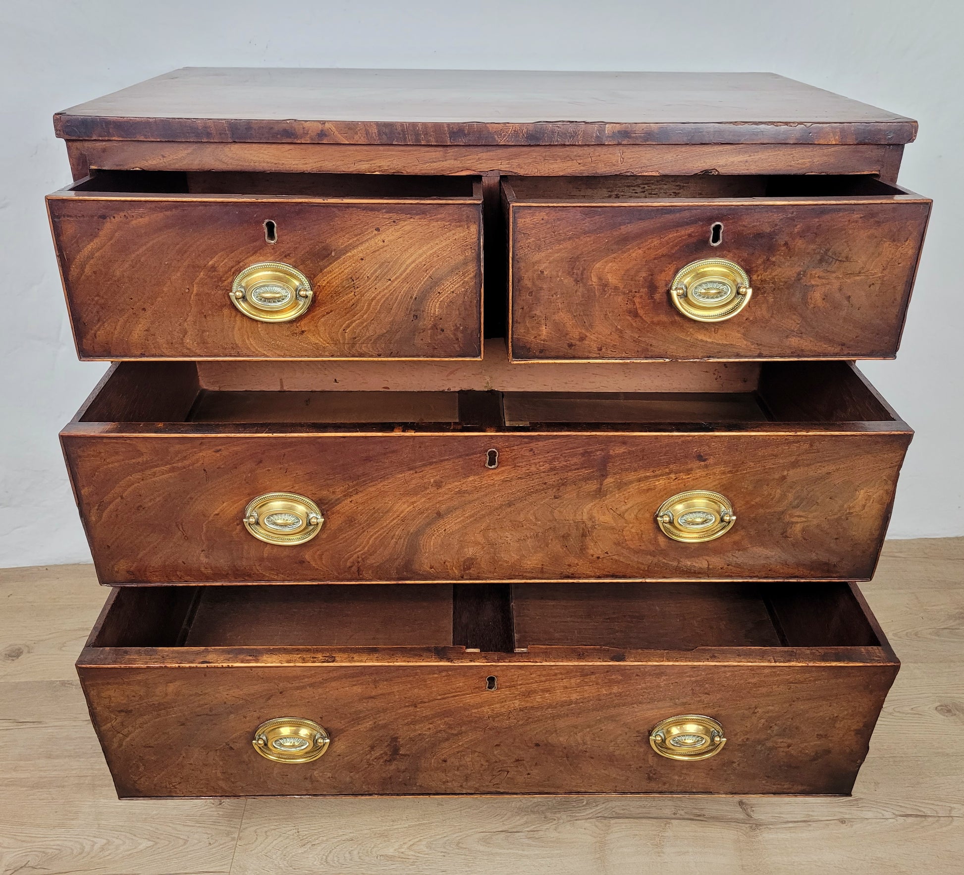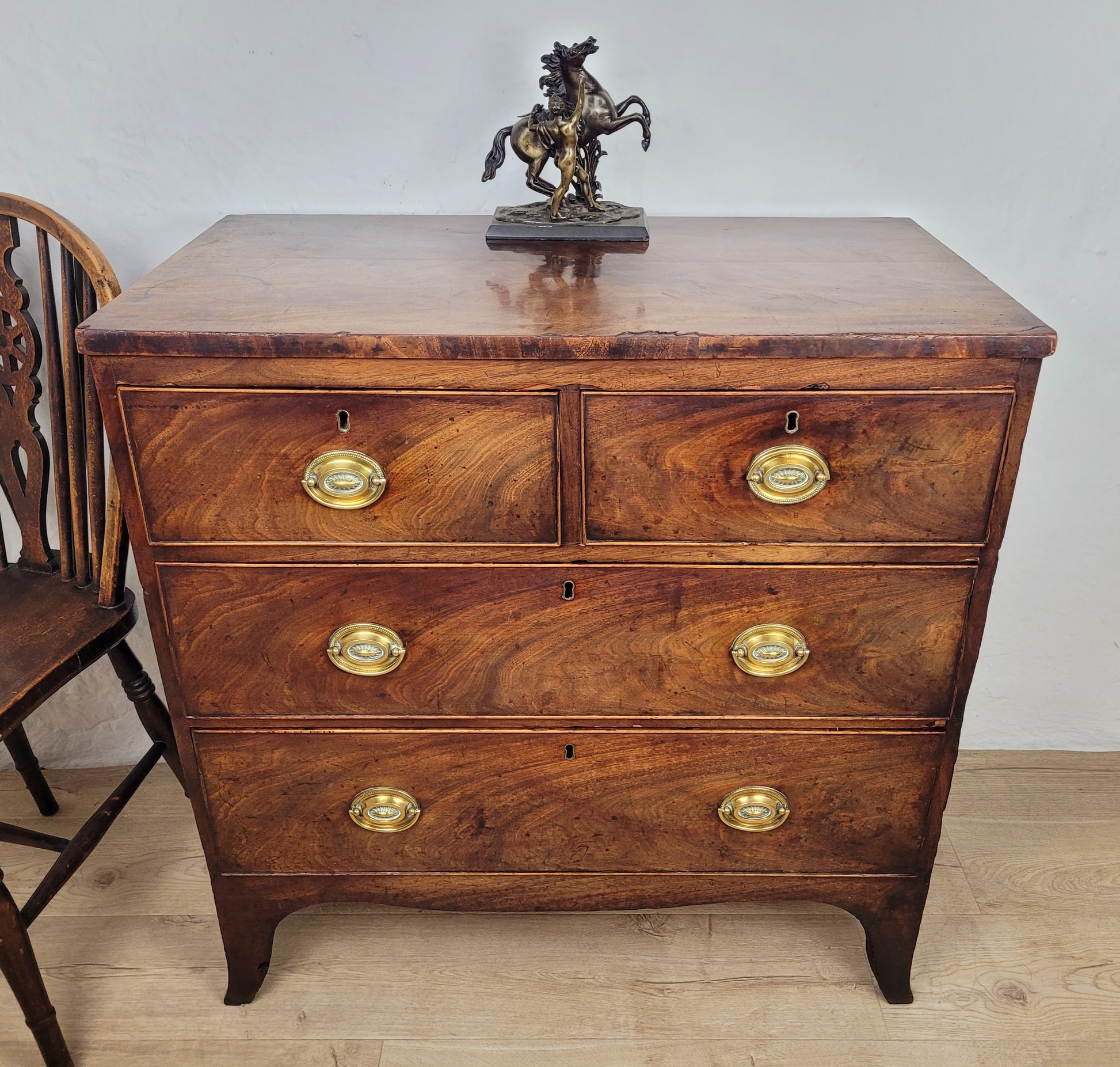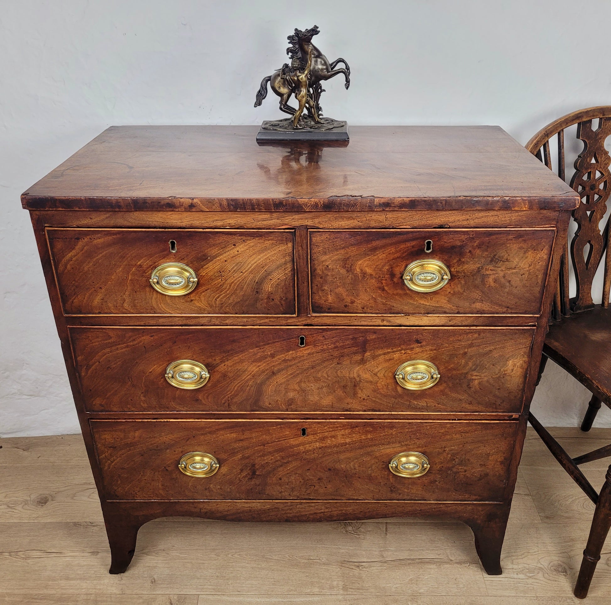 Displaying a rich mahogany patination to the front of the chest, that really contrasts against the brass handles.