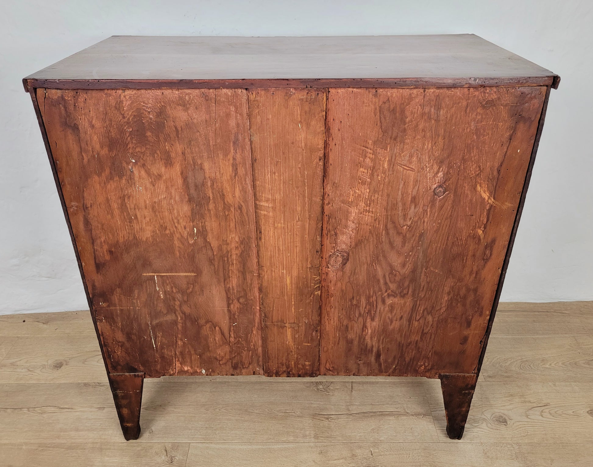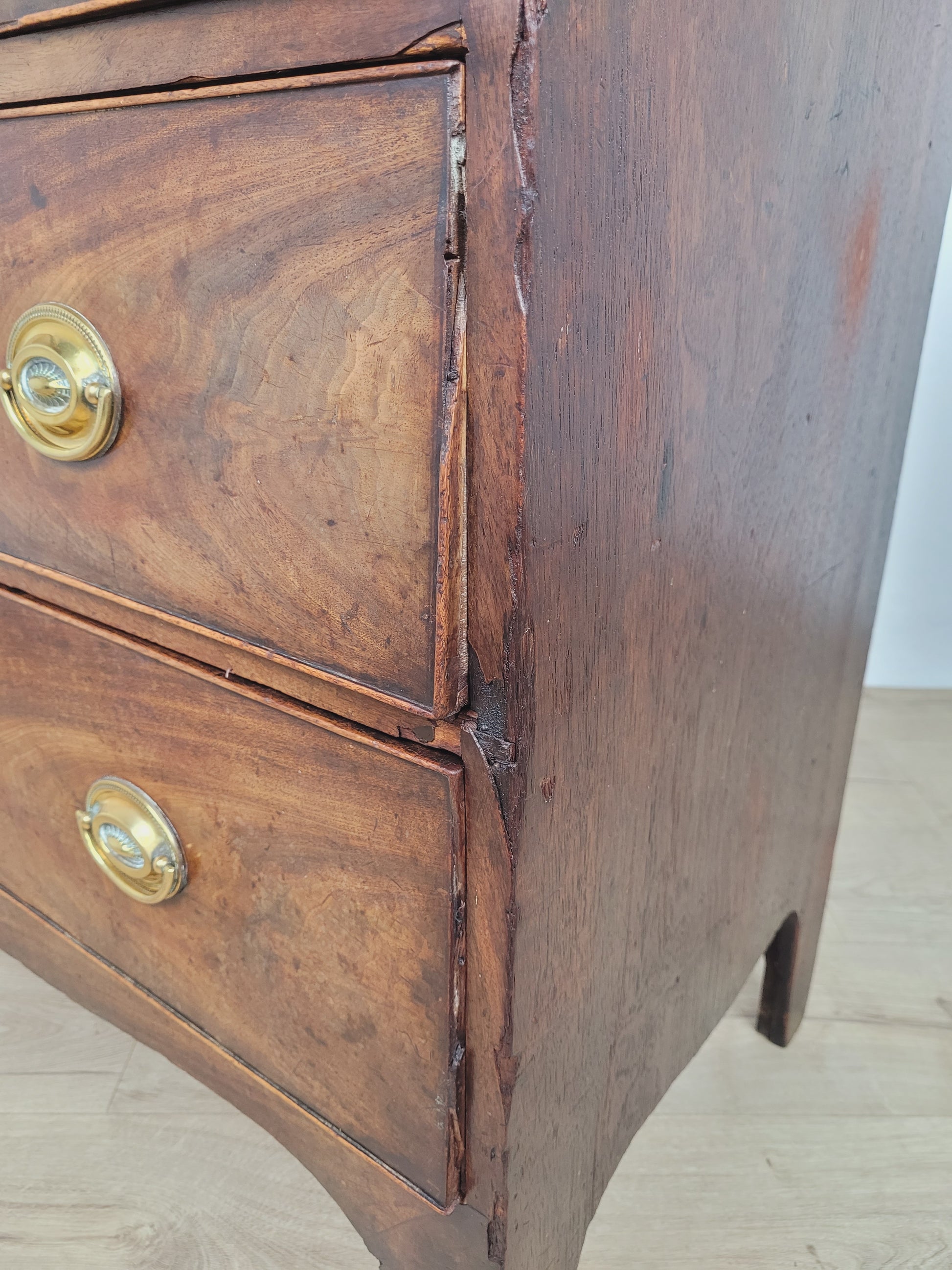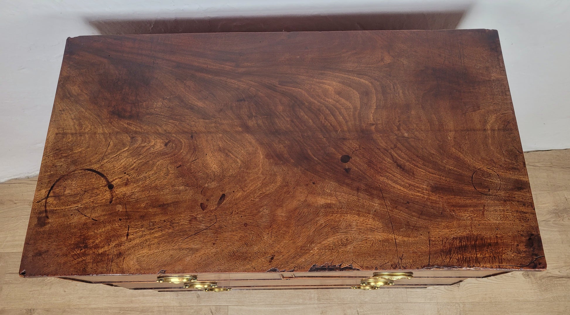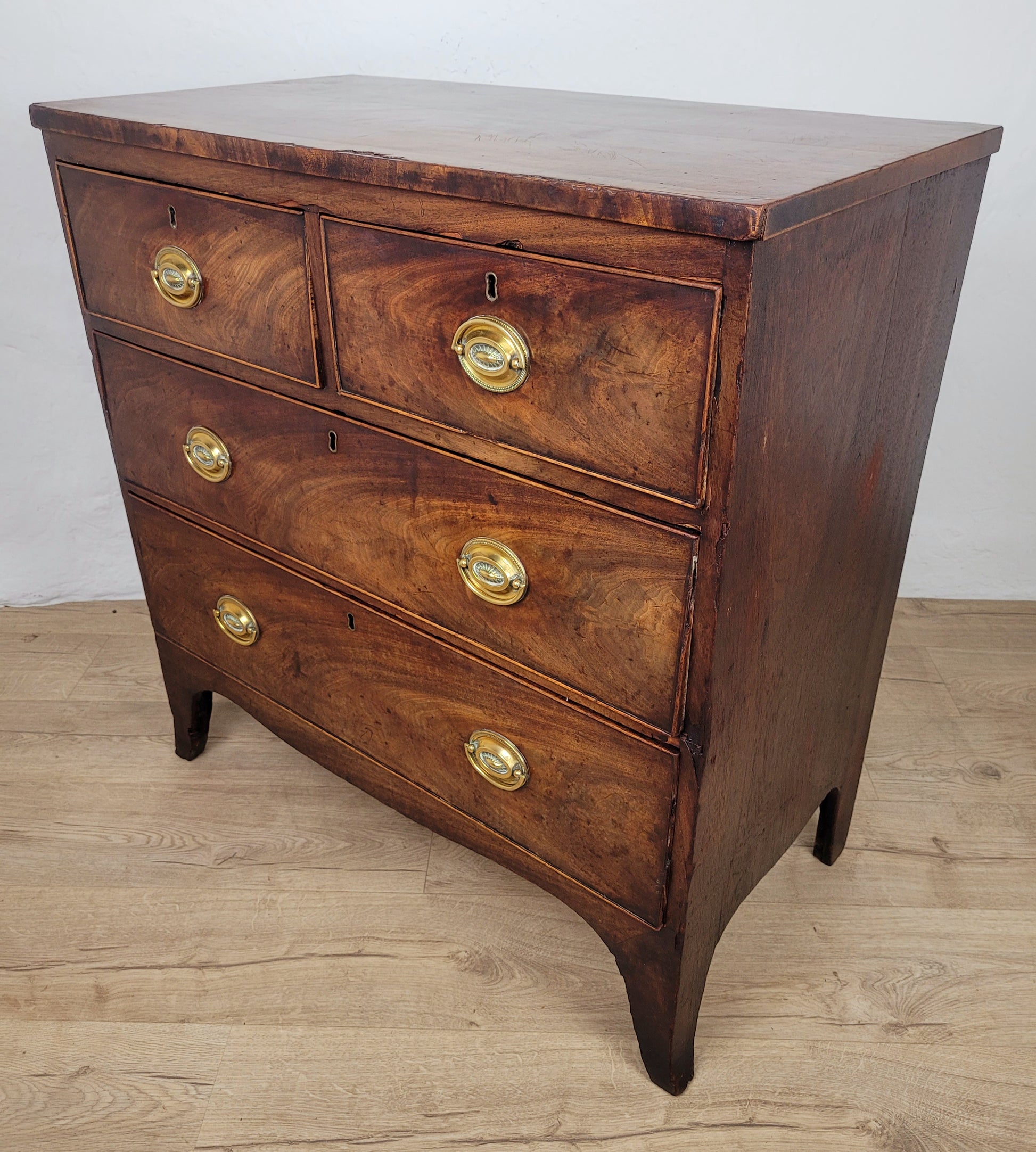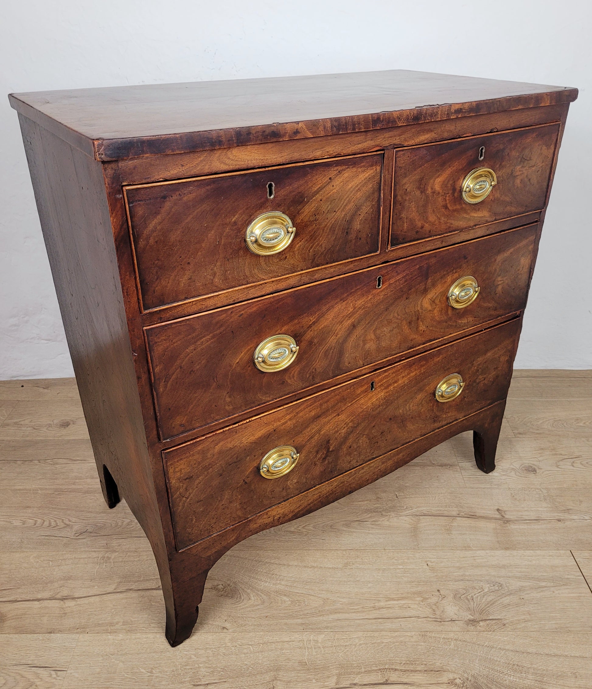 Displaying a rich mahogany patination to the front of the chest, that really contrasts against the brass handles.