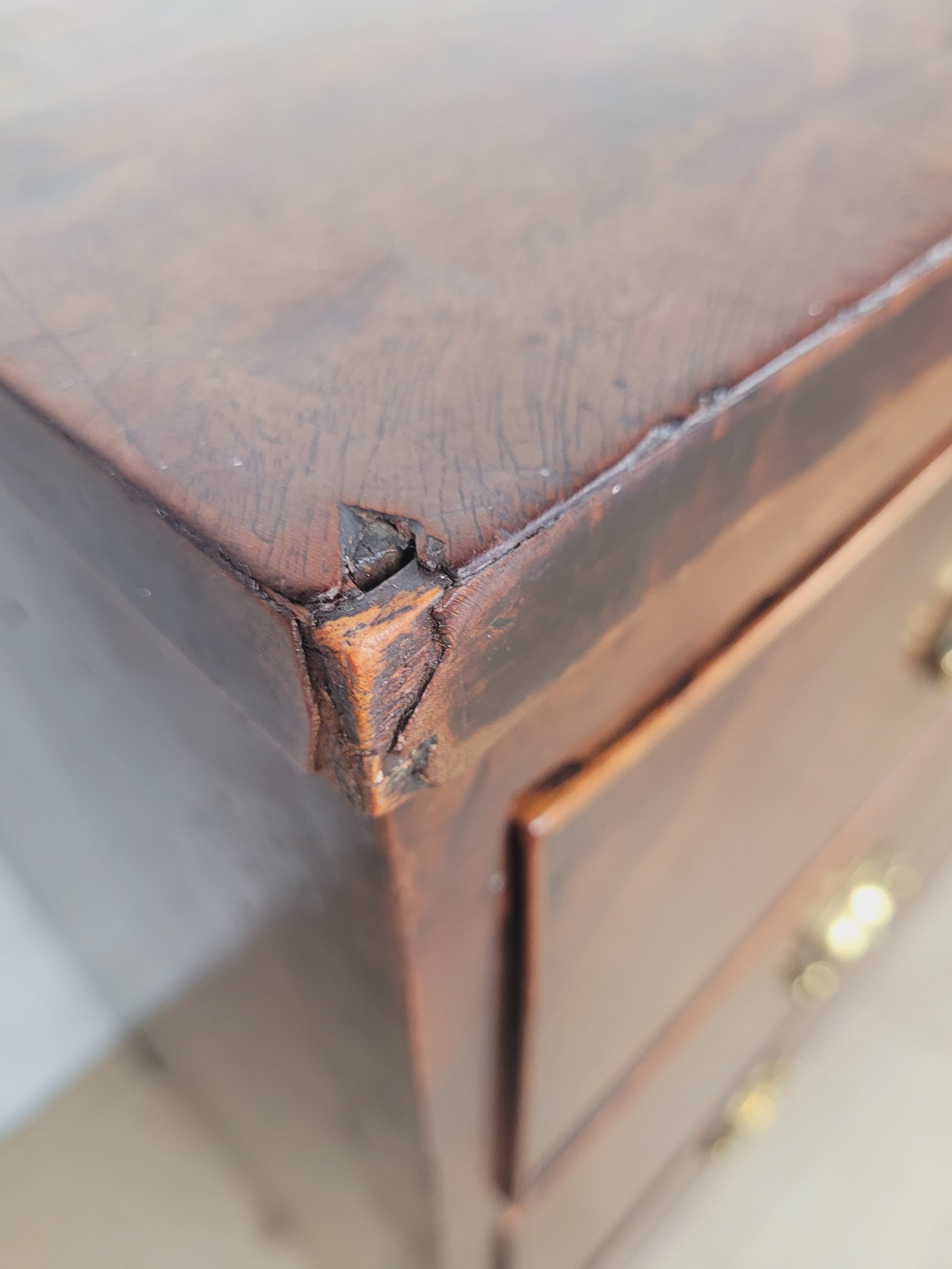 There are signs of historical woodworm to the top and back side of the chest of drawers, but these have all been fully treated by the previous owner (see photographs).