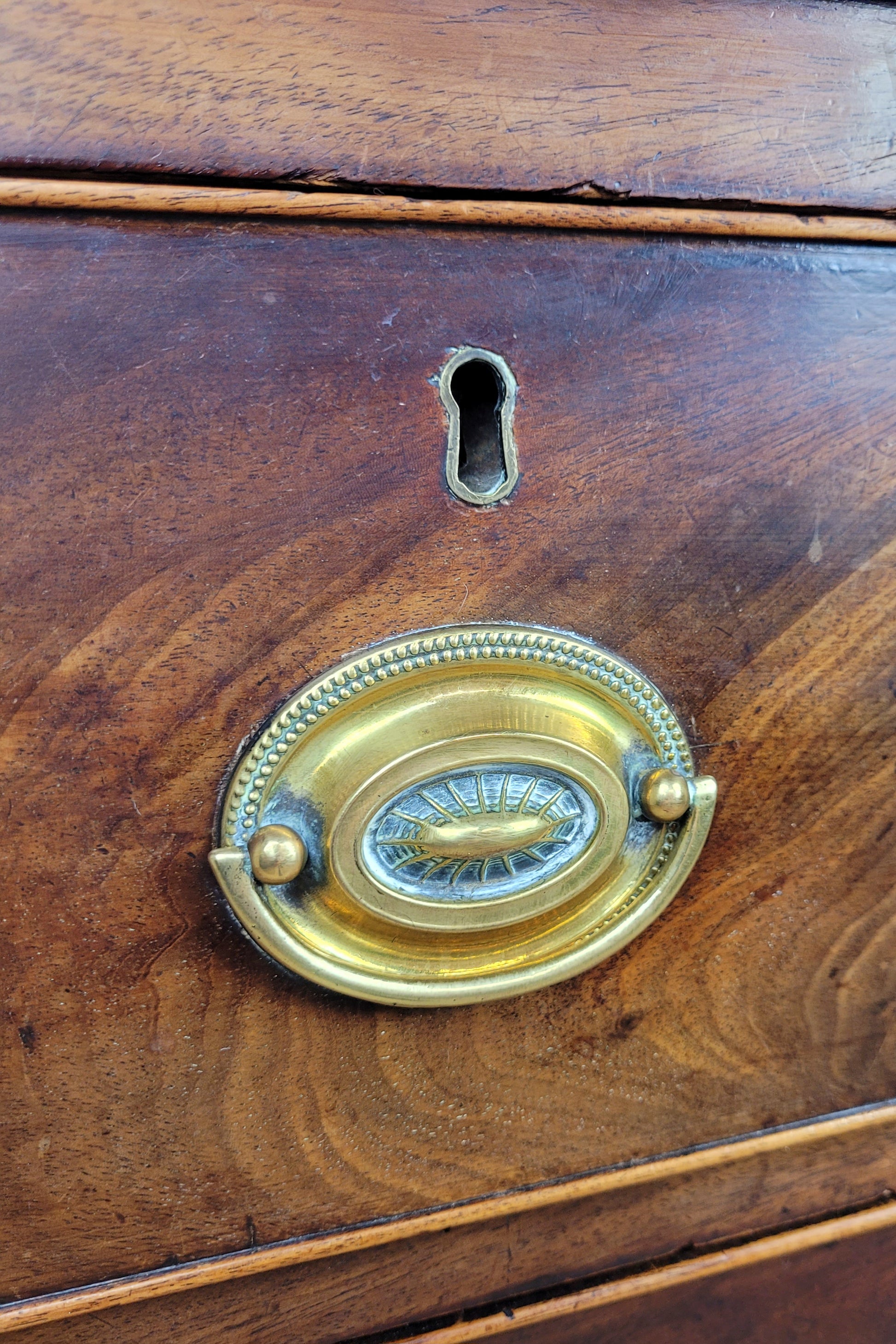 The drawers have unique oval brass designed drop handles with key holes (not working), provide an elegant 18th-century finish to this wonderful chest of drawers.