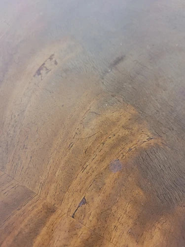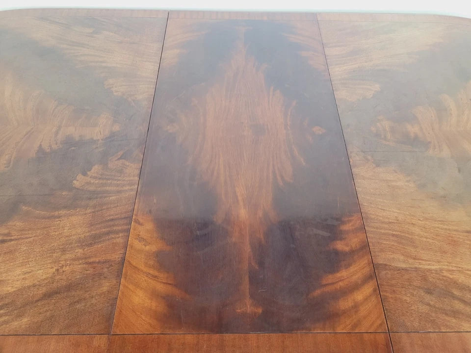 The table top has a gorgeous dark inlaid design, surrounding the table top that compliments the rich flamed mahogany patination.