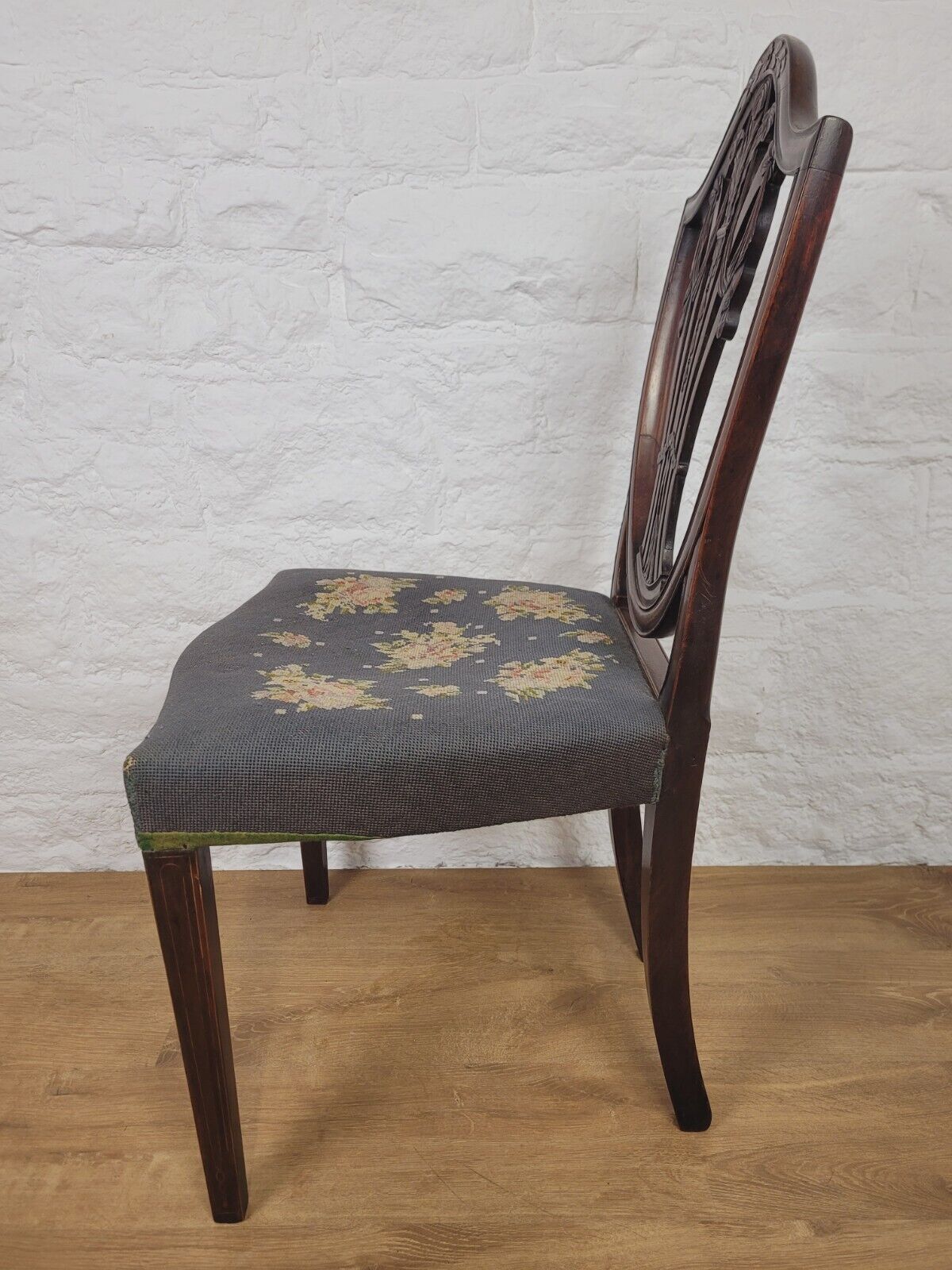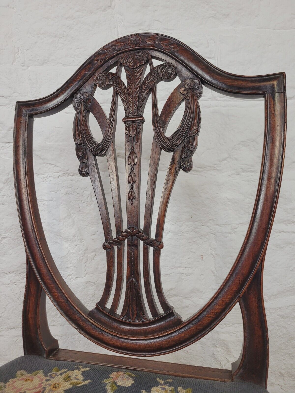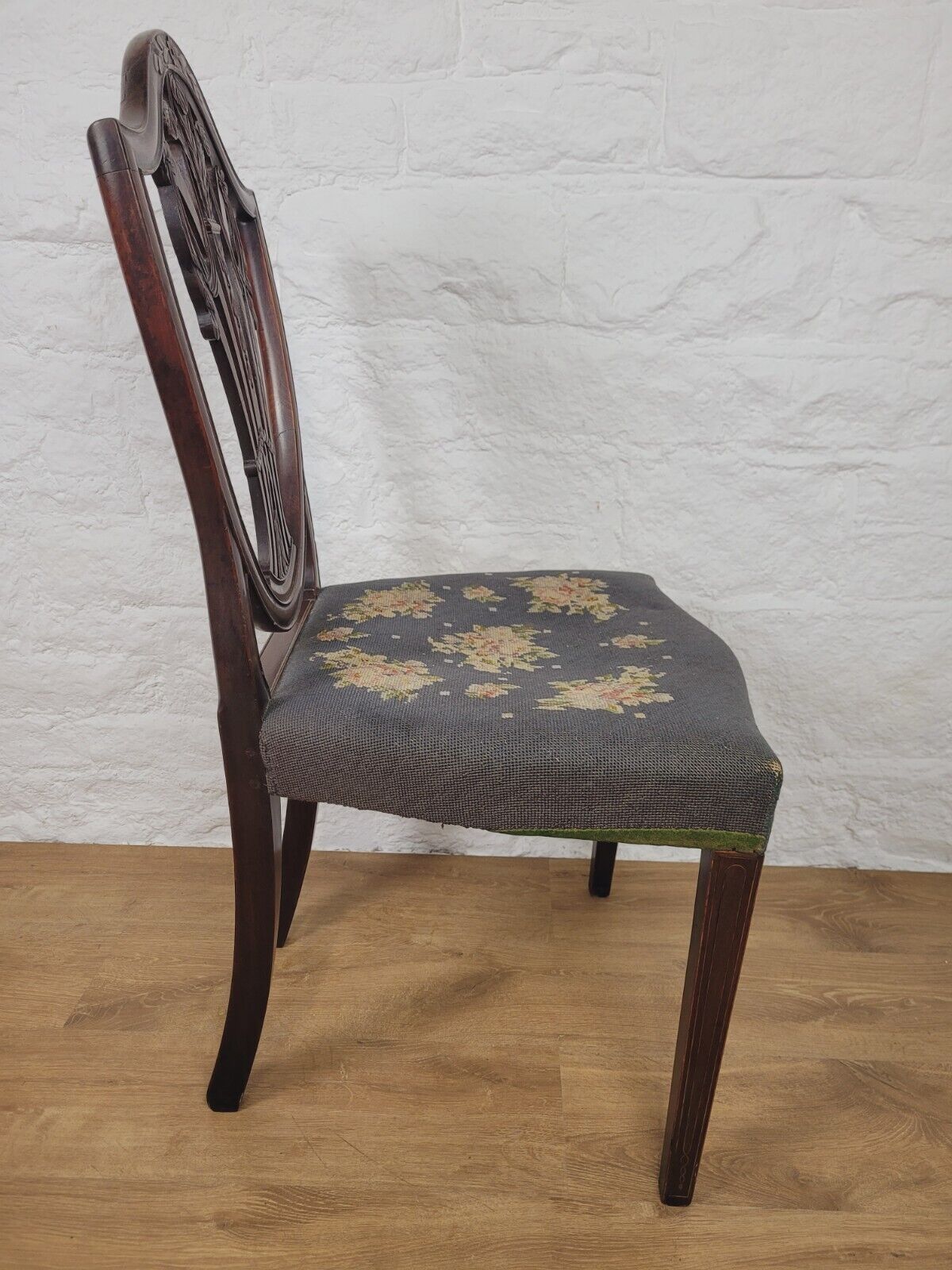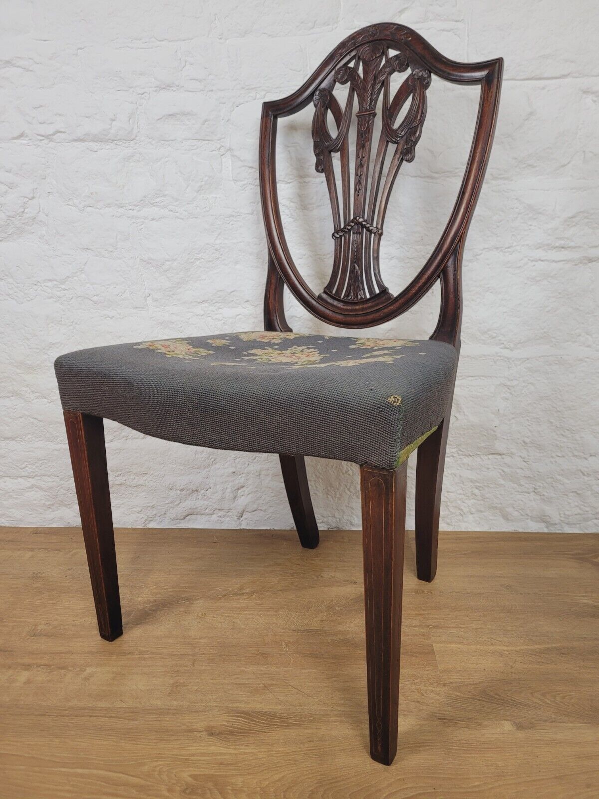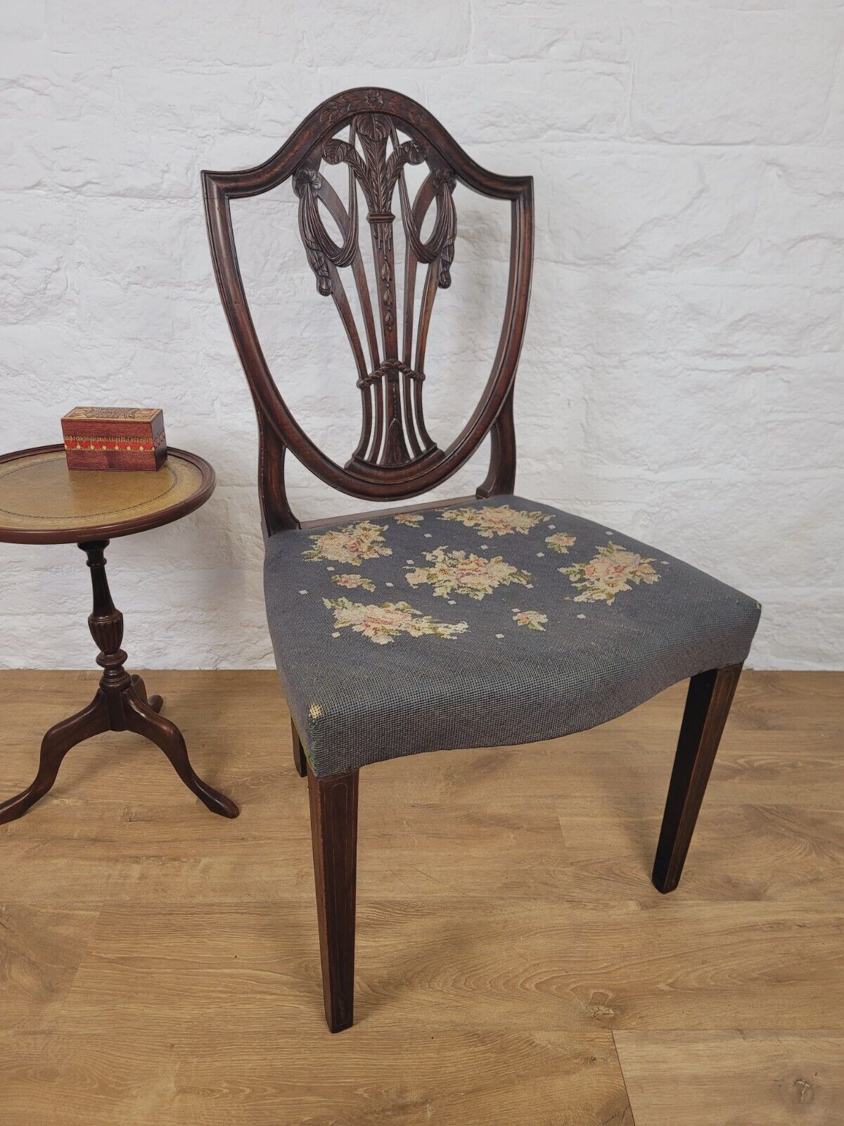 This is a beautiful Victorian shield back dining chair with an elegantly hand crafted wheat sheaf motif design to form the backrest.