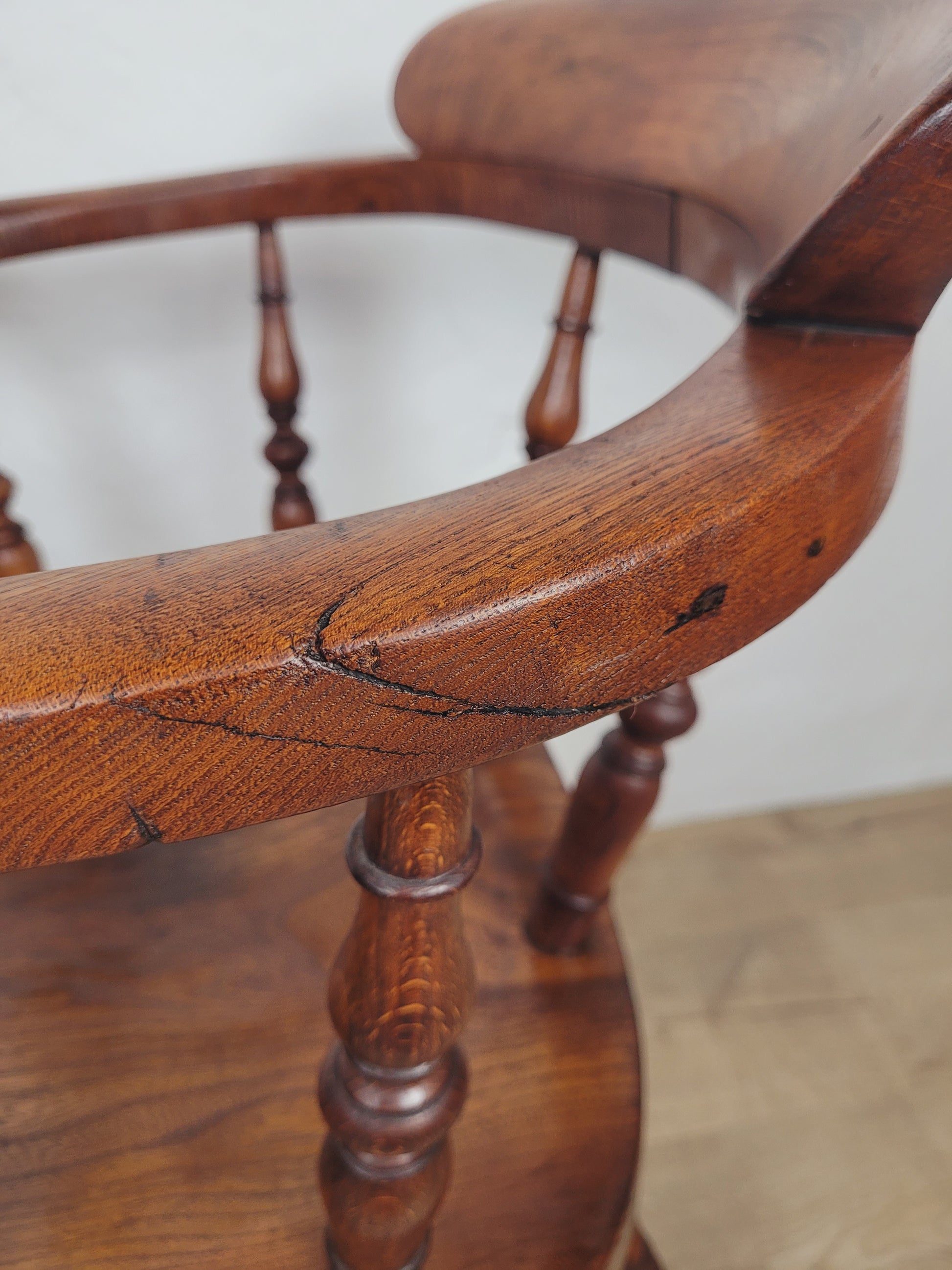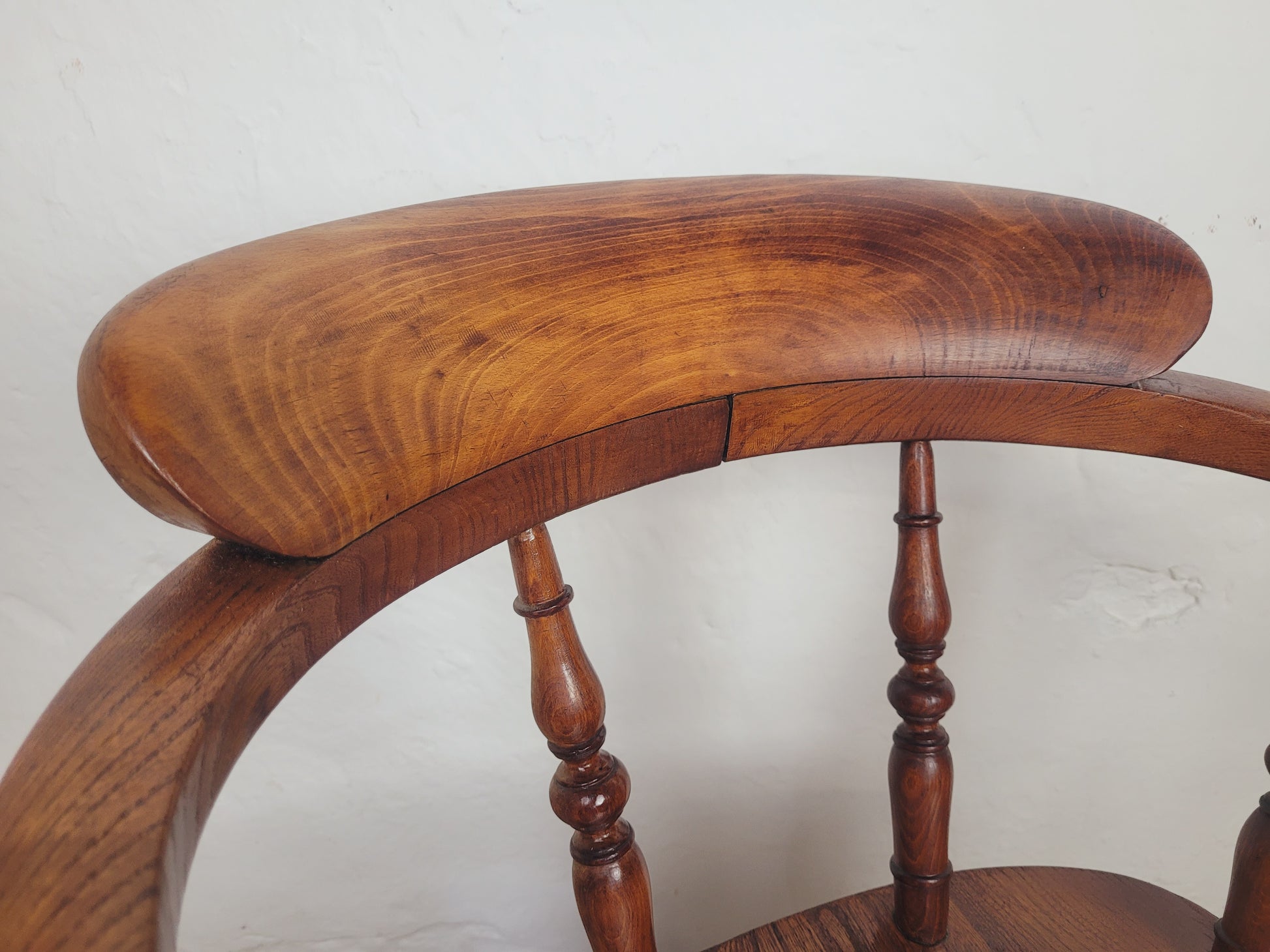 It features a wonderful curved back design that forms the open armrests, holding the excellent turned spindles.