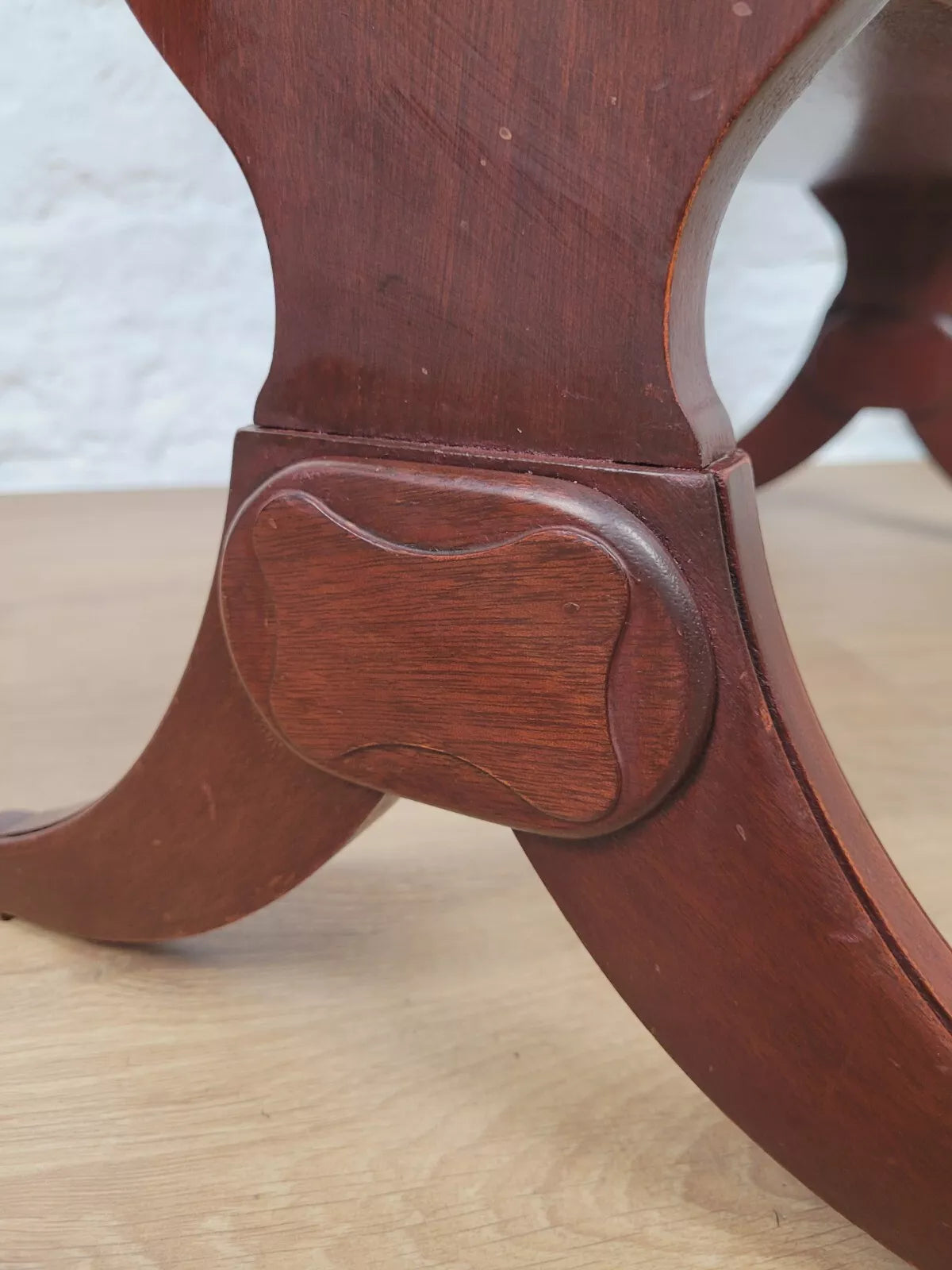 Displaying a gorgeous Mahogany patina, this serving tray-top table is a solid construction.