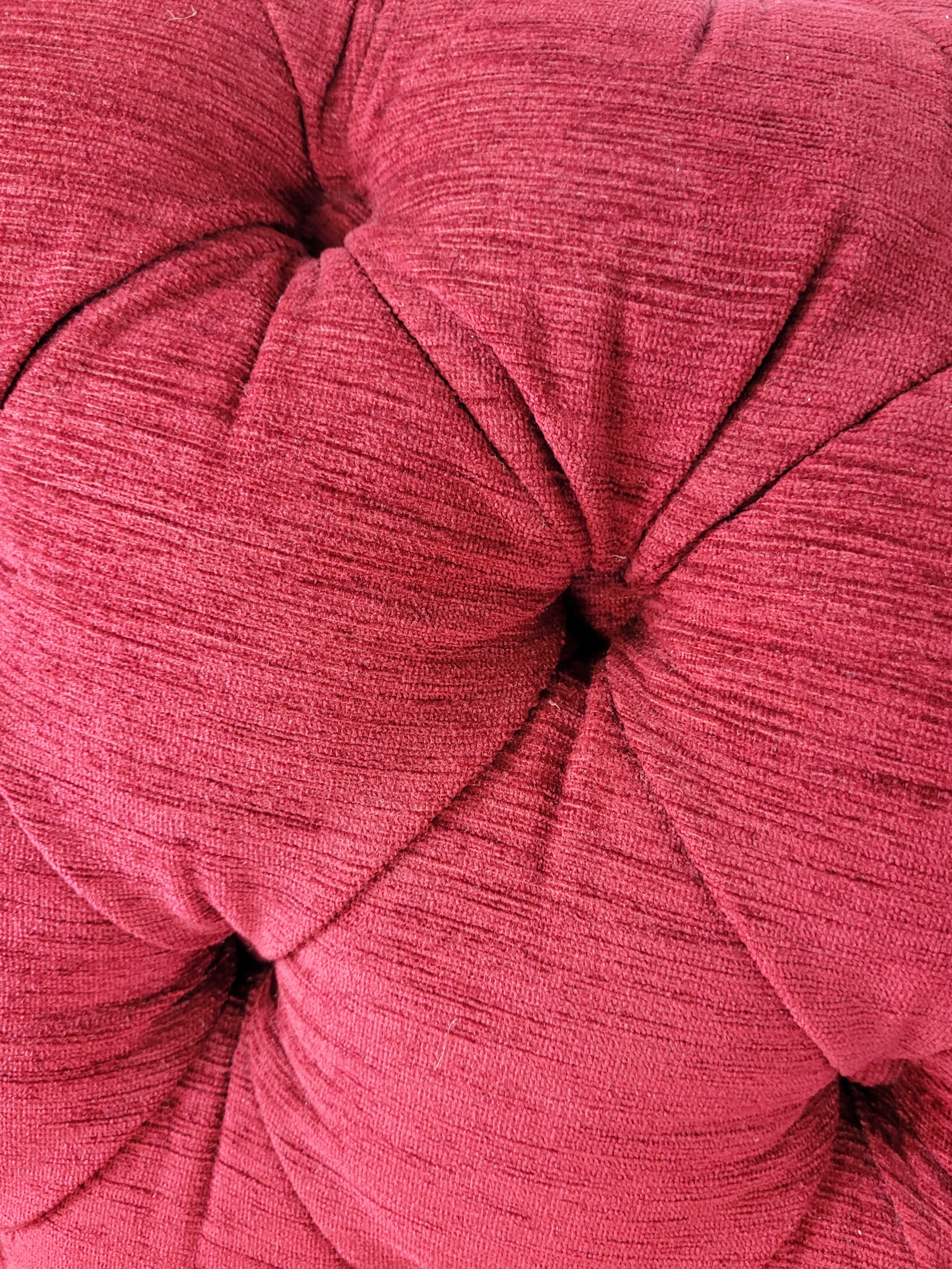 The Chaise lounge has been historically upholstered in a red Chenille, finished with a piping around, that truly does enrich the home setting.