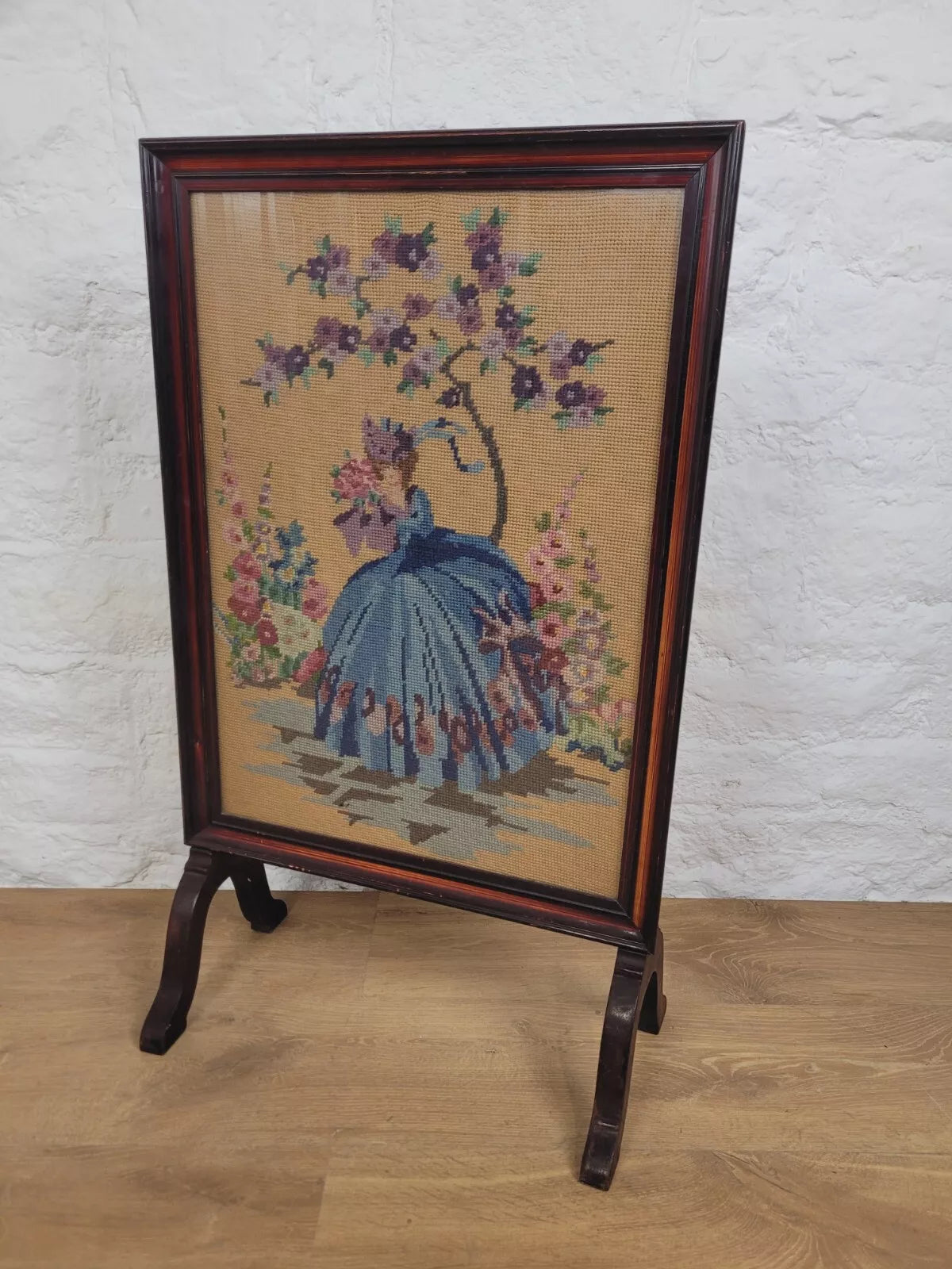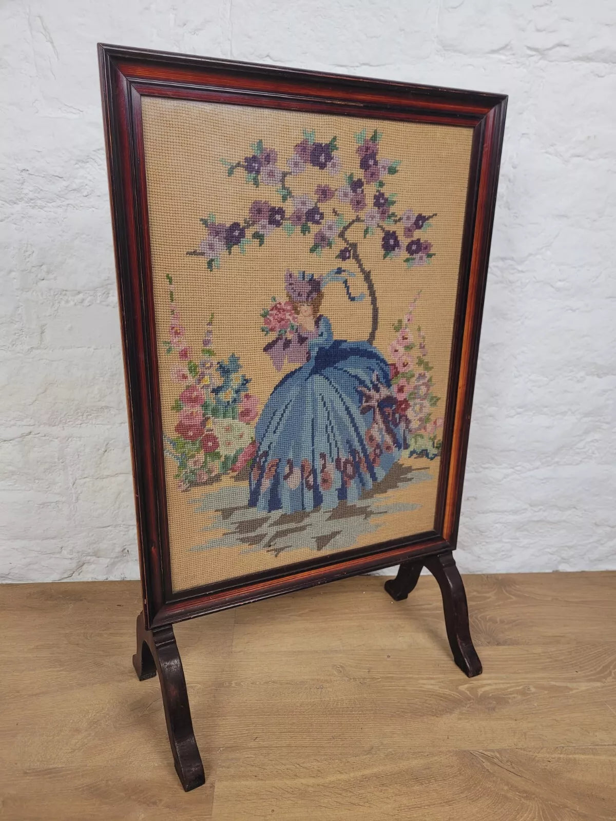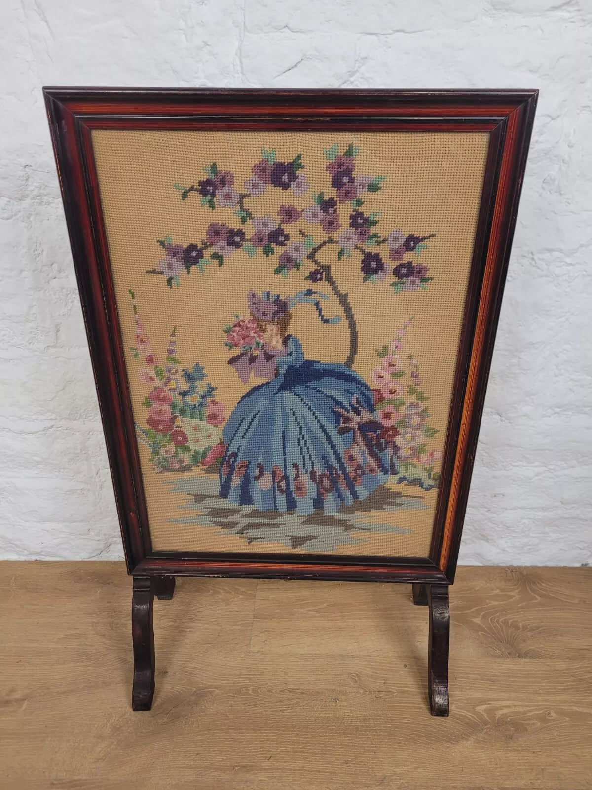 This is a gorgeous victorian embroidery fire screen that is sure to impress and add a touch of elegance to your fireplace décor.