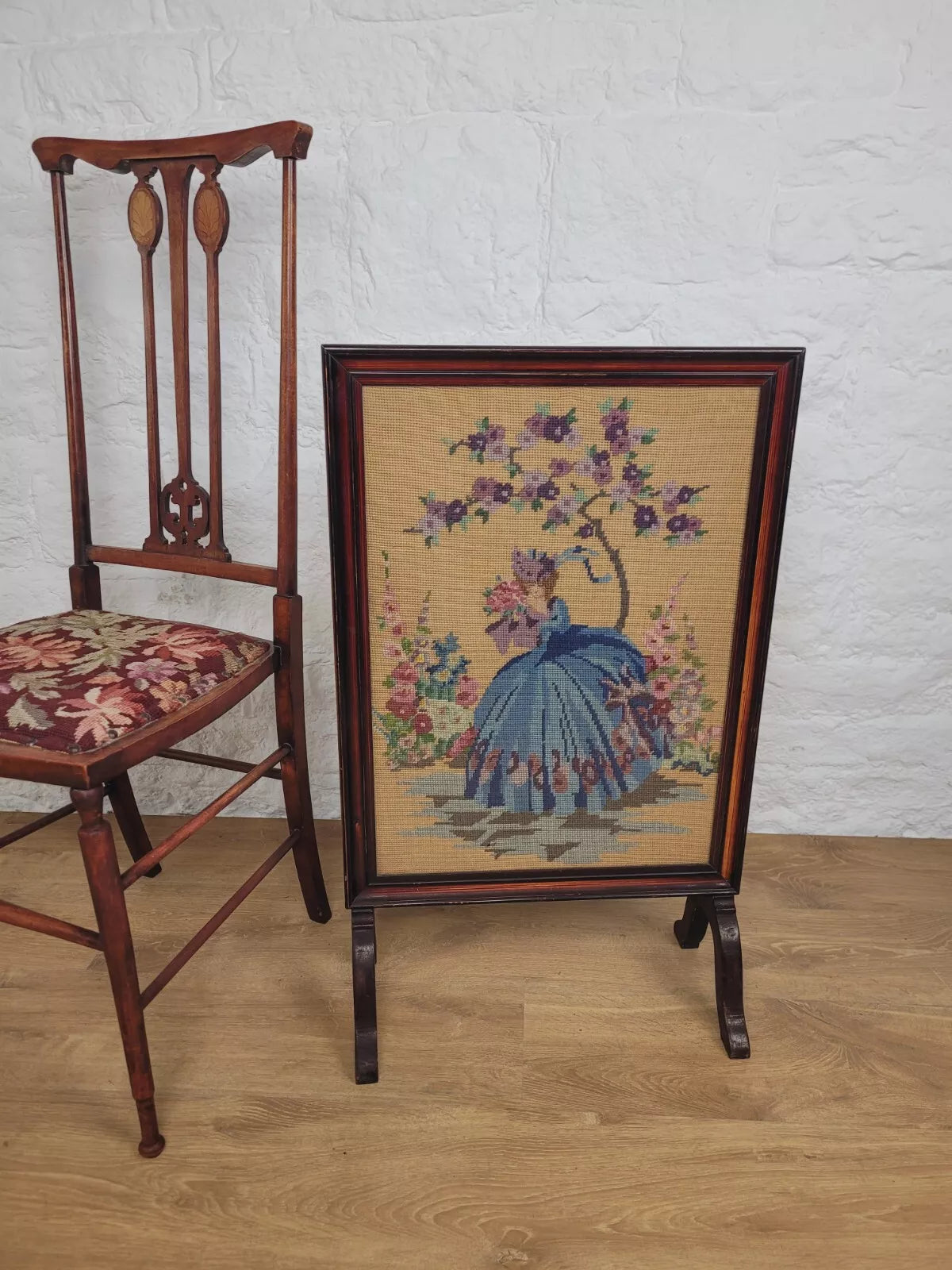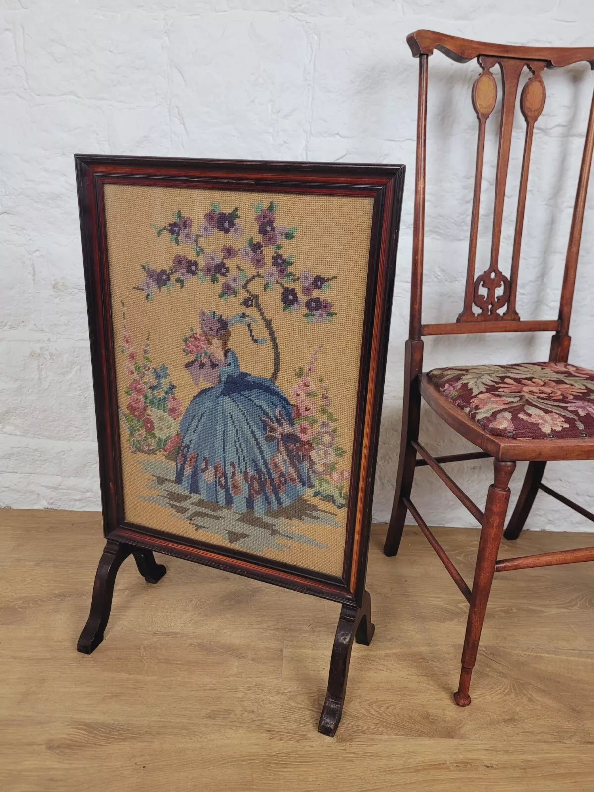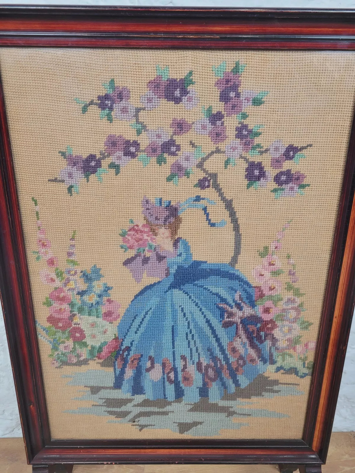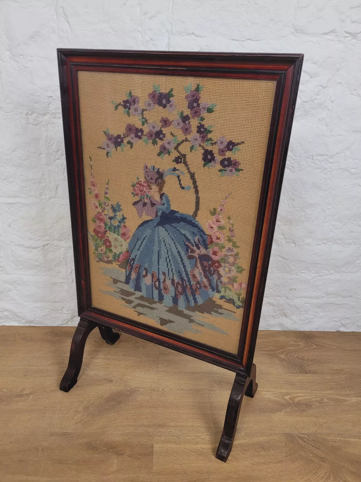 This is a gorgeous victorian embroidery fire screen that is sure to impress and add a touch of elegance to your fireplace décor.