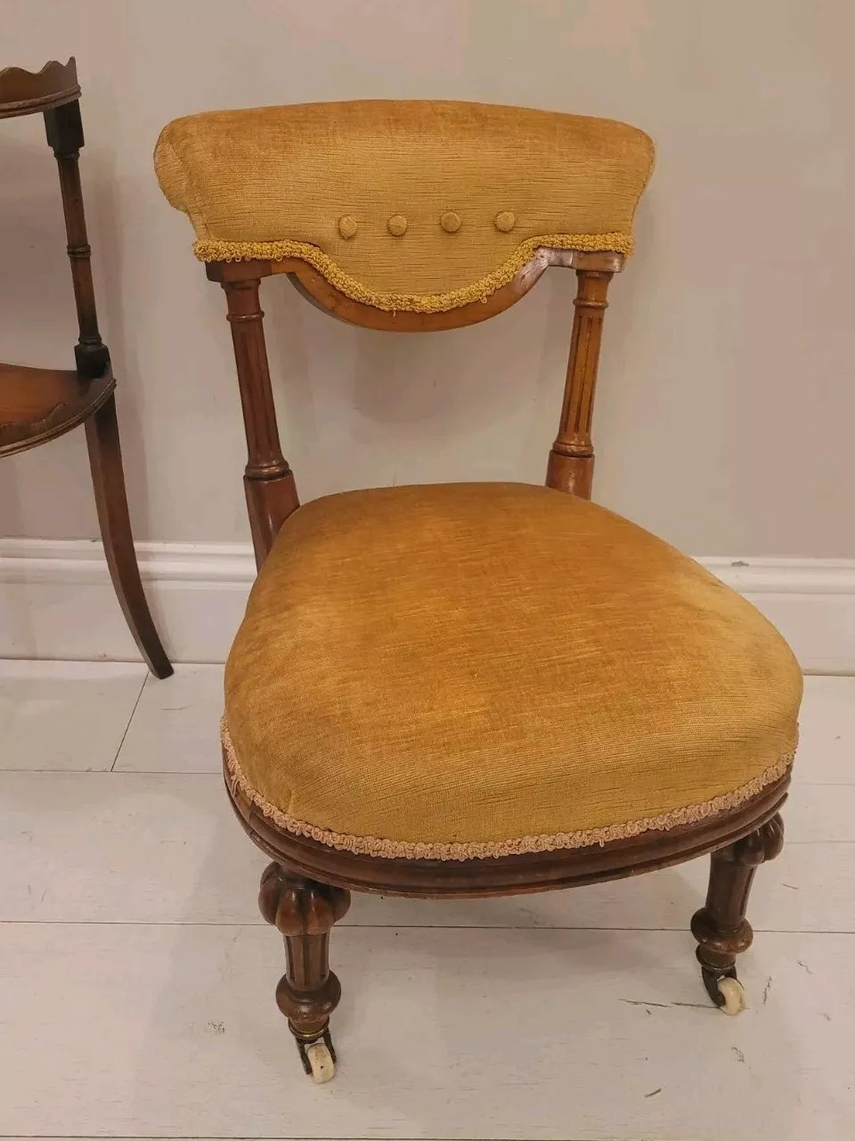 This is a gorgeous Victorian bedroom nursing chair that would compliment many bedrooms, living rooms, or hallway period settings.