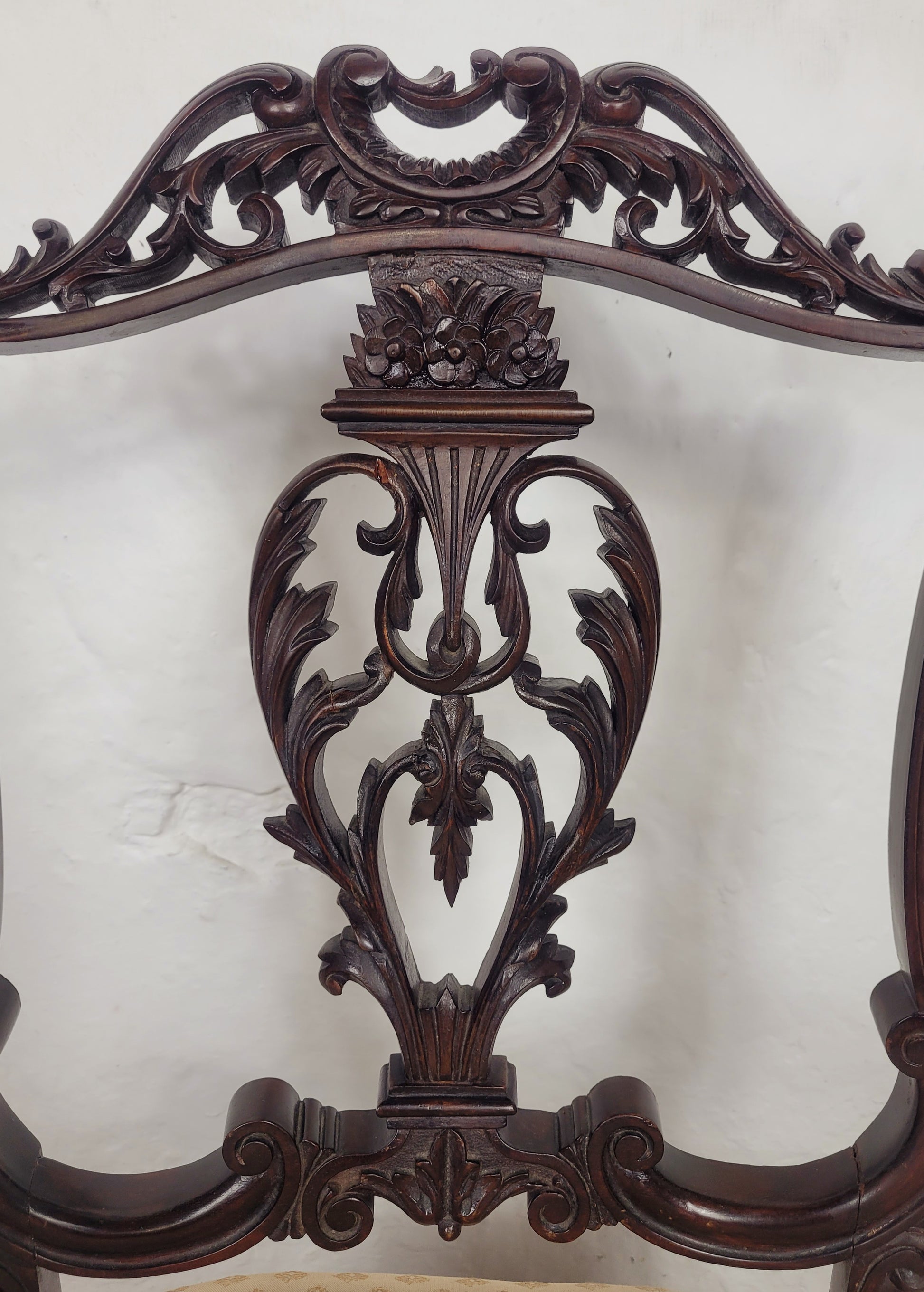 The backrests are constructed with a gorgeous carved foliate backsplat. The backsplat is held by the upper and lower foliate carved rails, which is held by the two side carved rails.