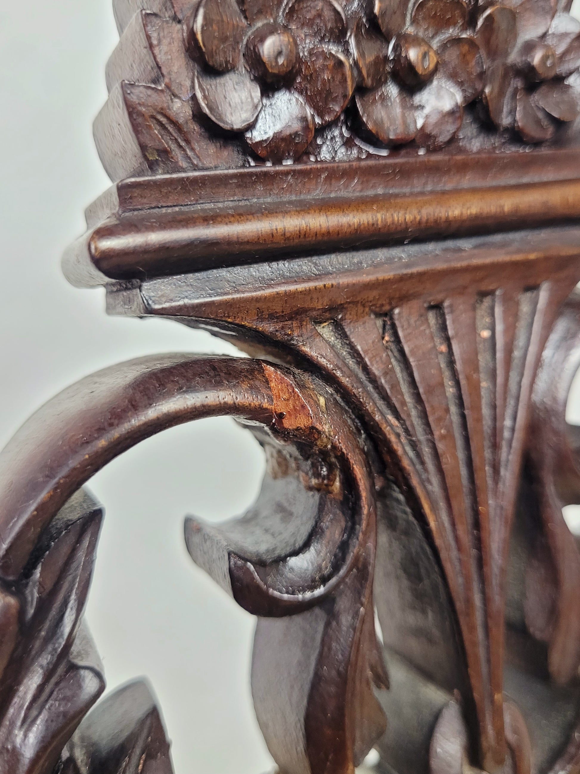 The lower carved foliate backrest supports show historical cracking, but this does not have any functional affect (see photograph).