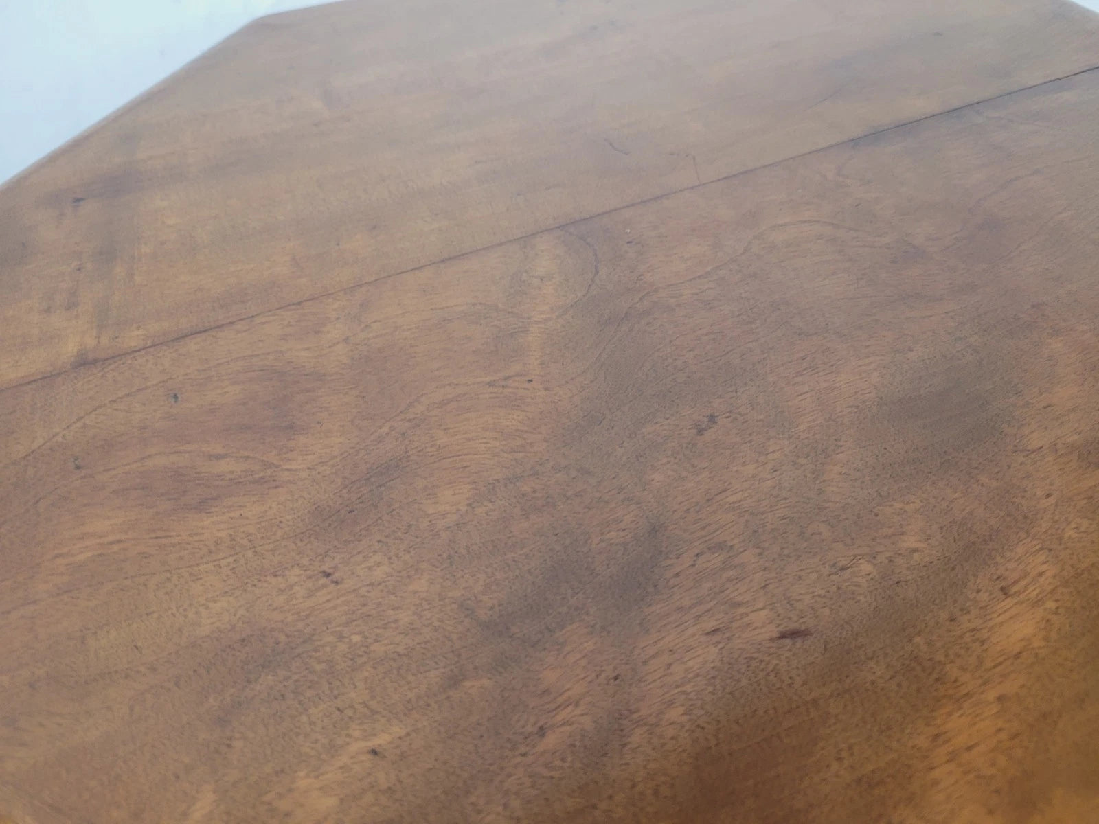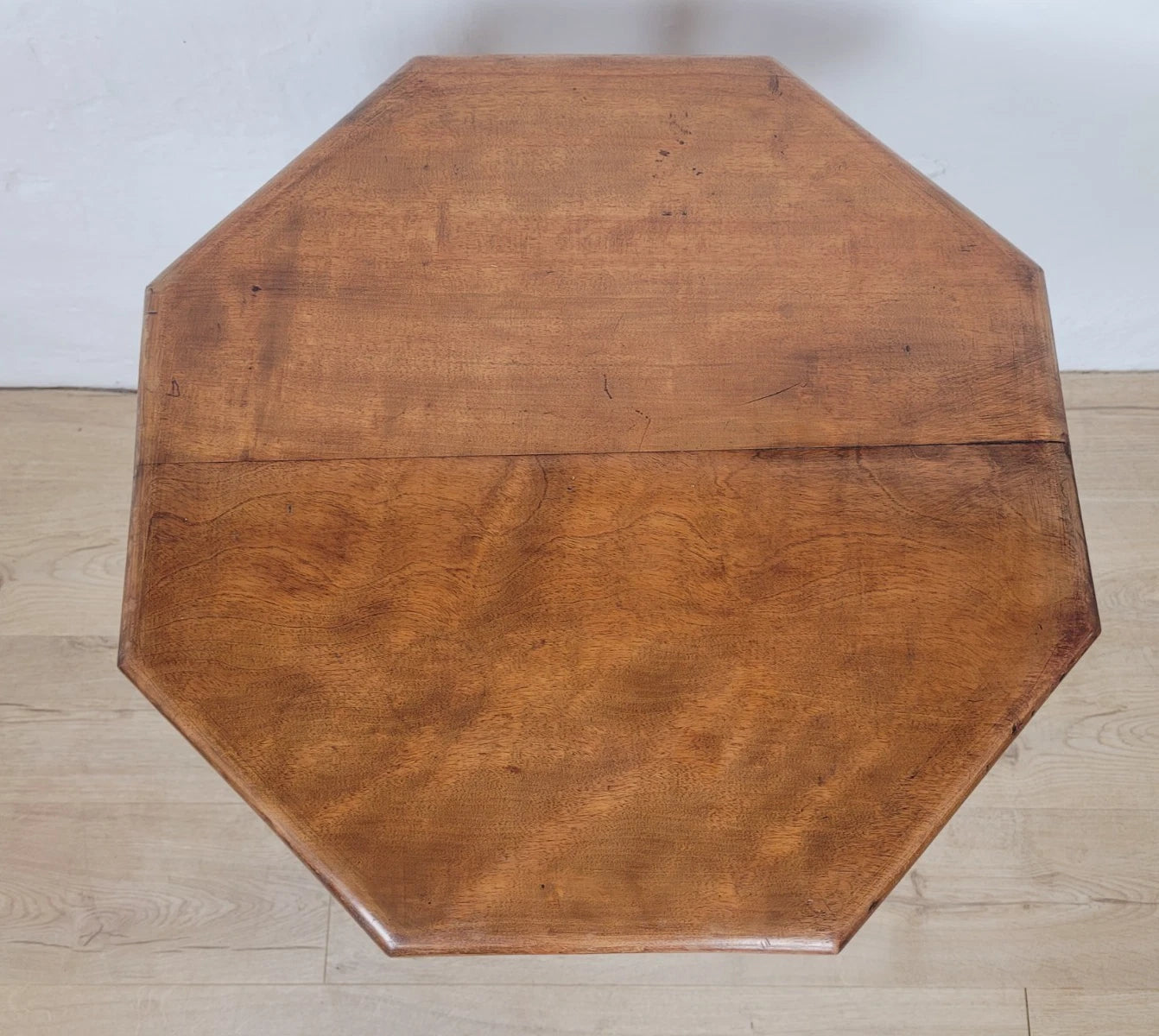 The tabletop displays a striking mahogany patination, with a lovely curved edged octagonal tabletop.