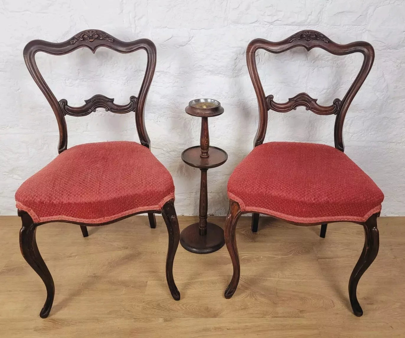 The chairs both display a rich Rosewood patination to the backrest carvings, only adding to the Victorian charm.