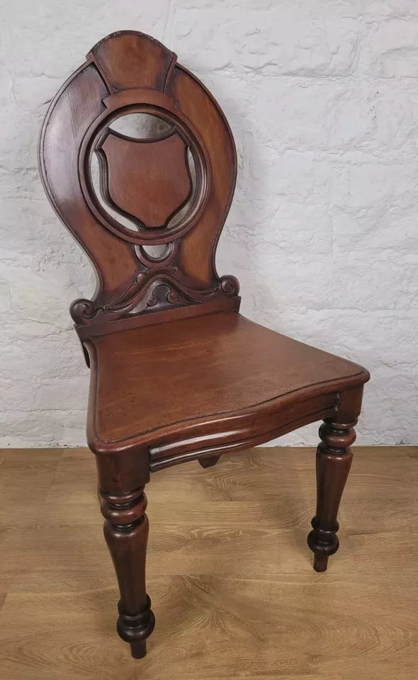 Georgian Hall Chair Shield Back Circa 1860 Carved English Postage Available