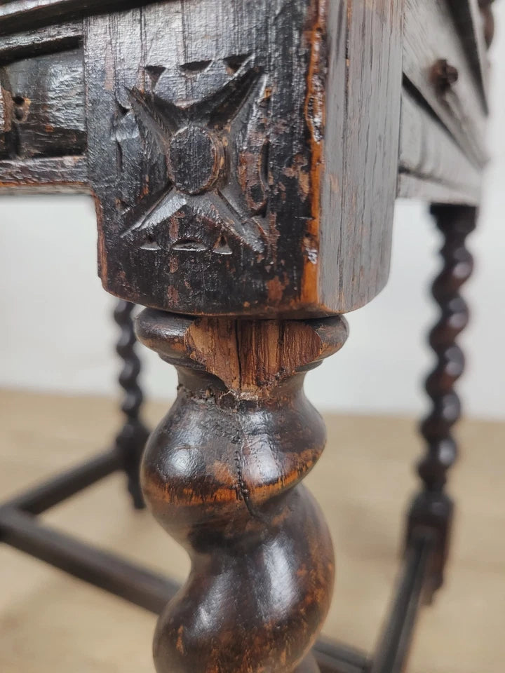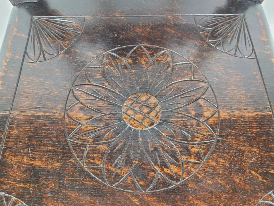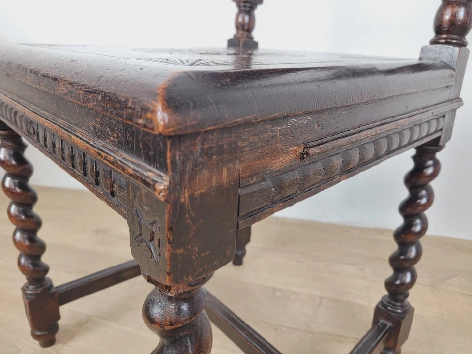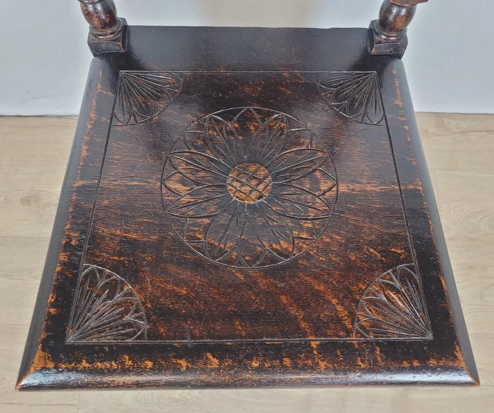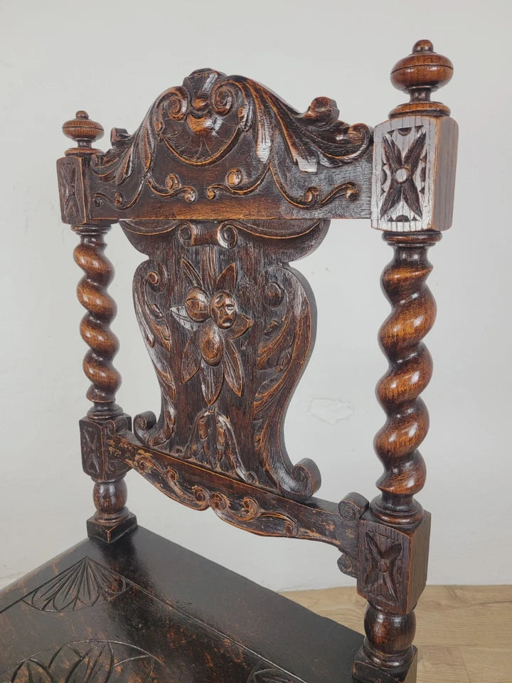 Leading down this chair stands proudly on four excellently bobbin turned legs, that are also finished with floral square carvings.