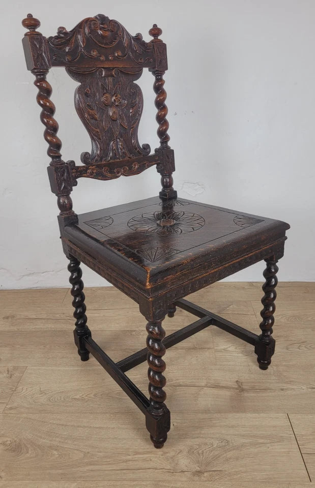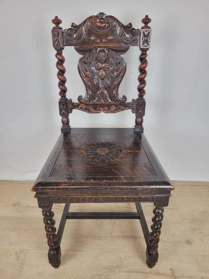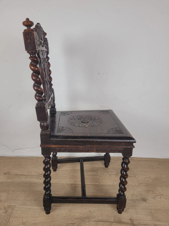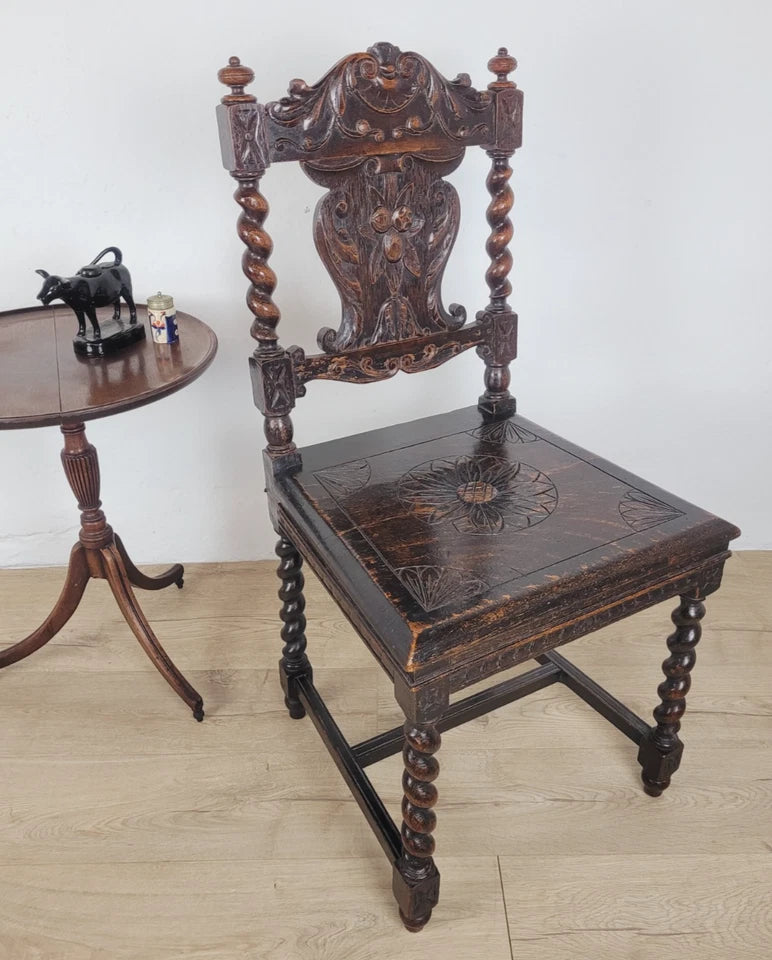 Victorian Side Chair Carved Barley Twist 17thC Styled Antique Postage Available