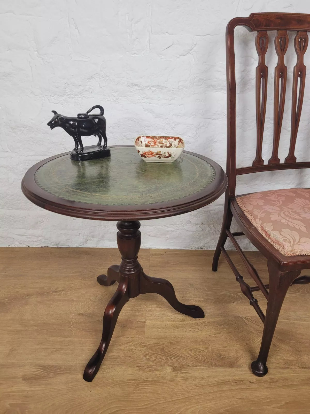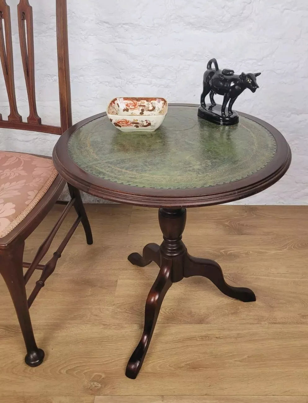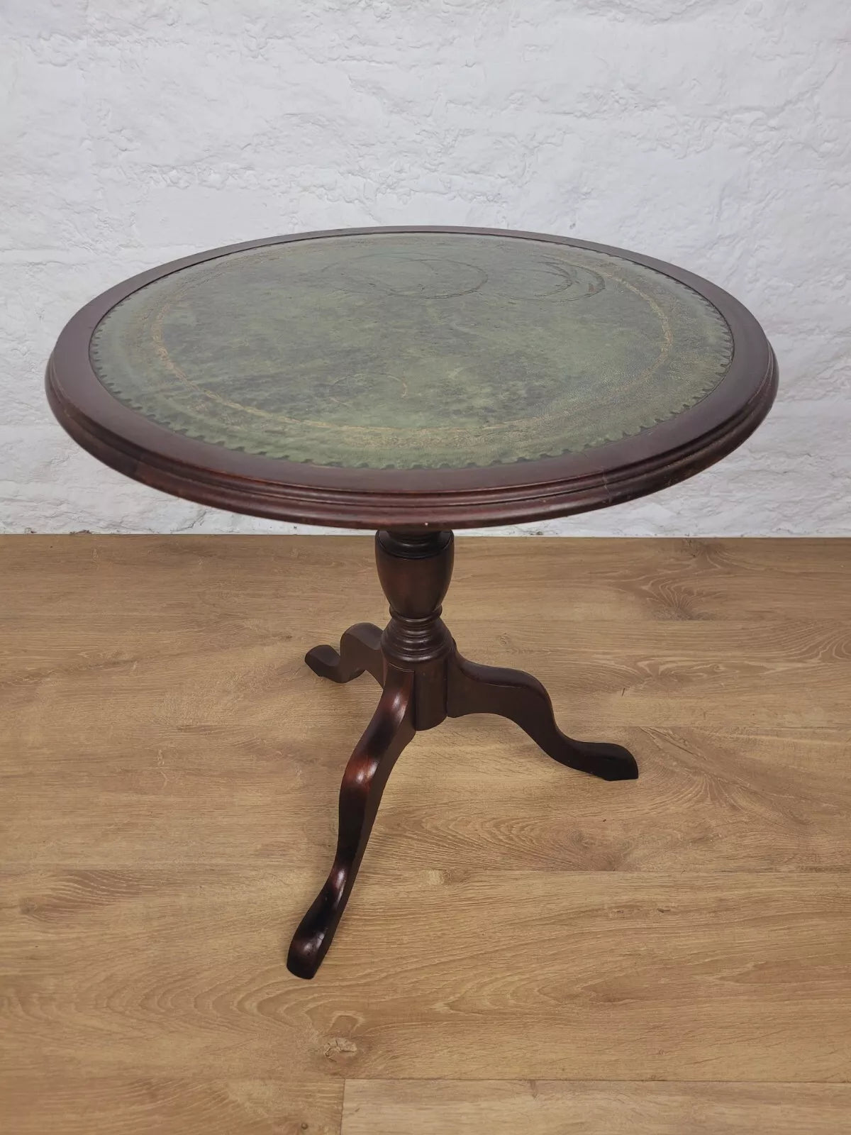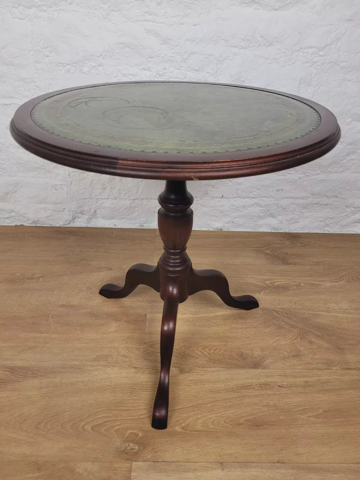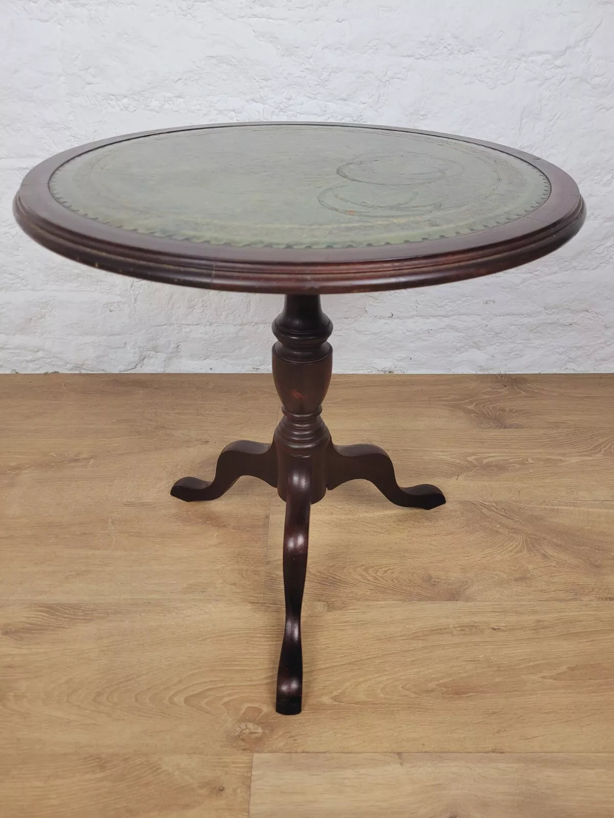 Victorian Tripod Wine Table Leather Gilt English Circular Postage Available