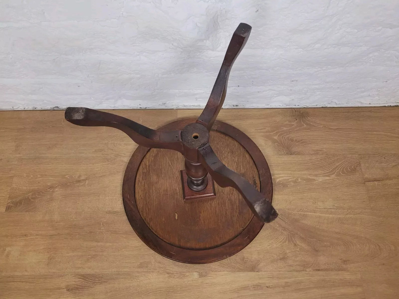 The tabletop is held by a turned leg with a bulbous central design, leading down to a carved fluted vase shape.