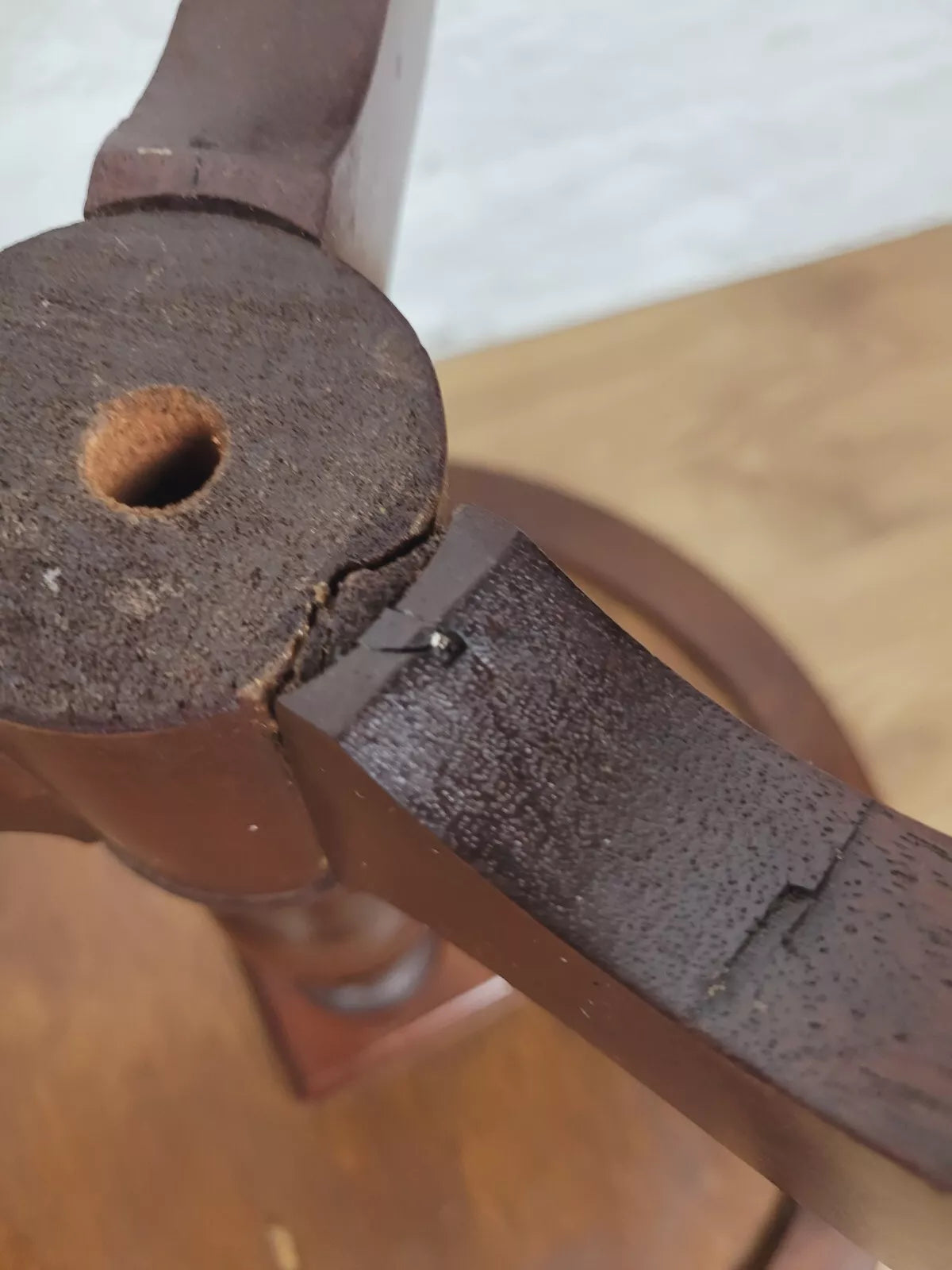 There was a historical break to one of the legs that has now been fully repaired (see photographs).