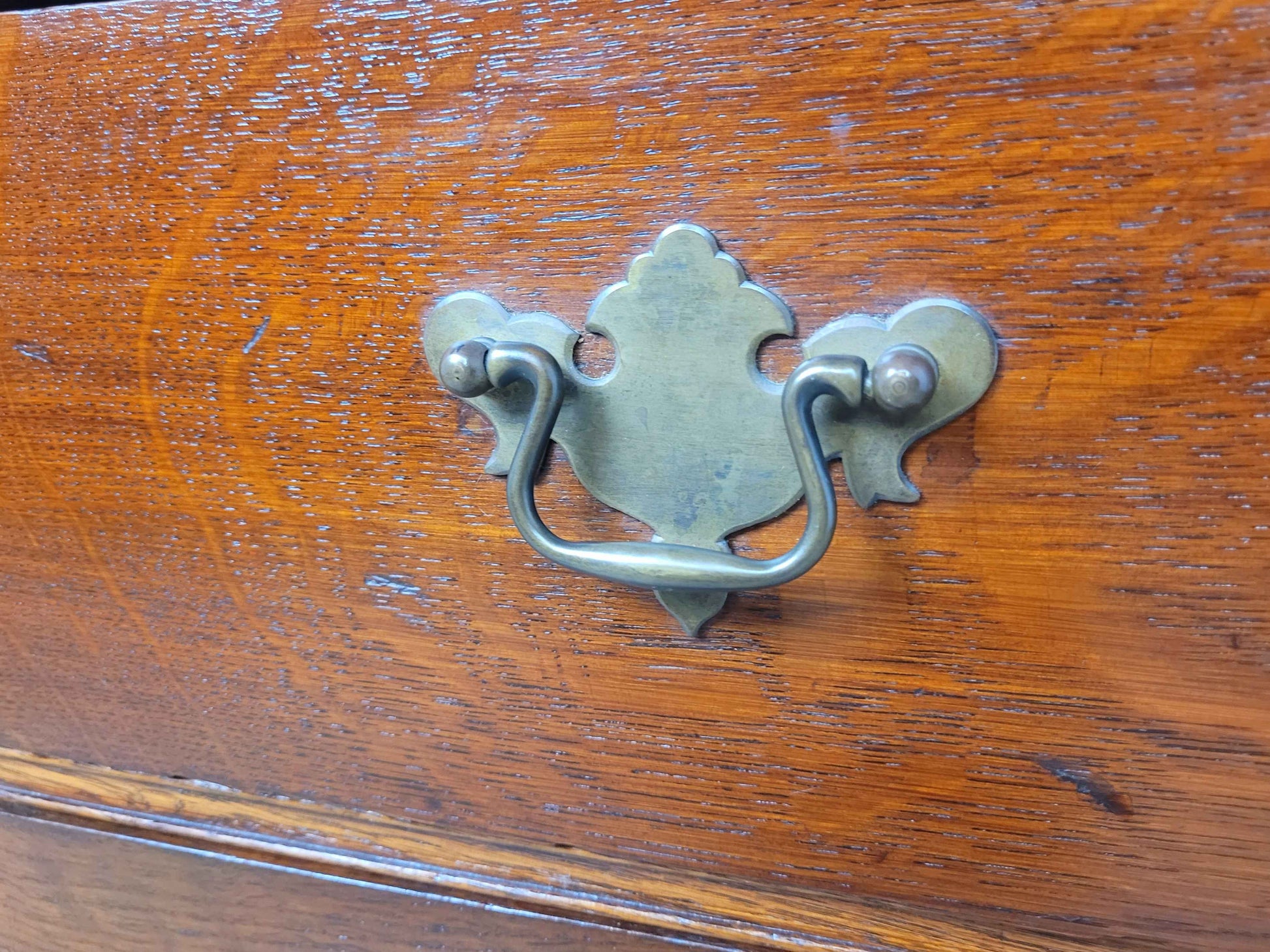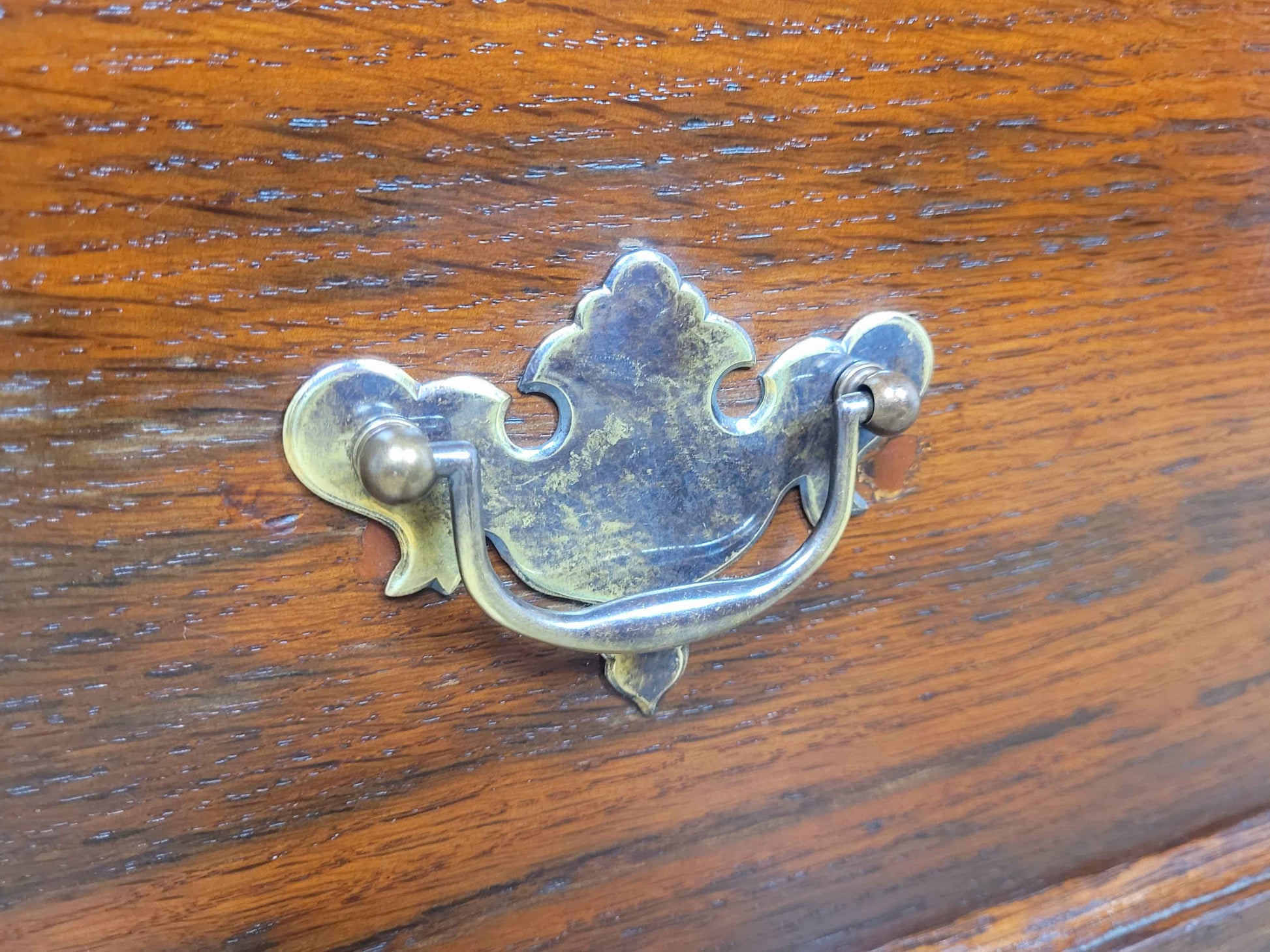 Both the pull out slat handles, and the bottom left drawer handle have been replaced (see photographs).