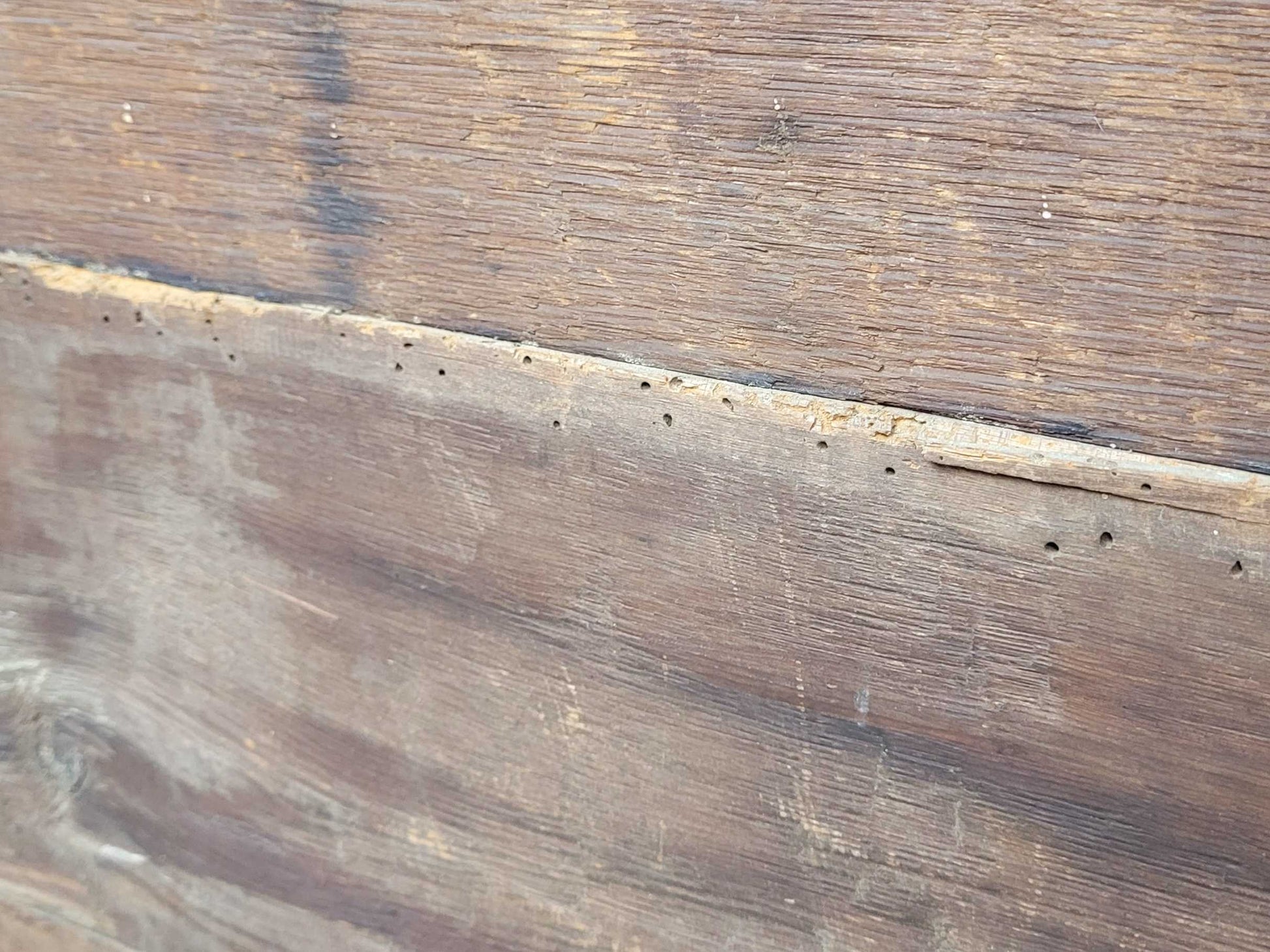There are historical signs of woodworm to the backside that have been professionally treated by the previous owner (see photograph).