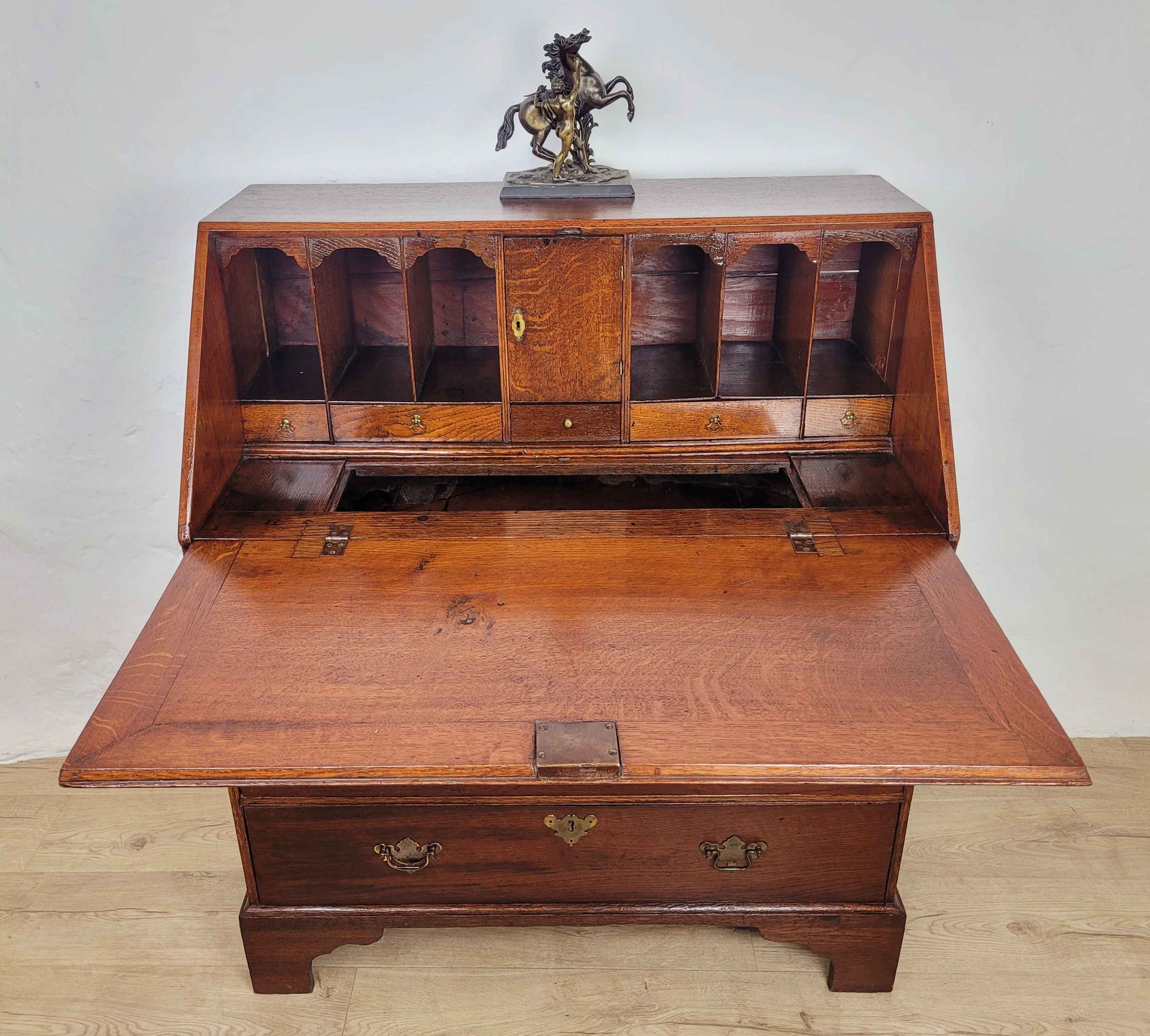 The bureau stands proudly on 4 solid bracket feet, with a raised lower boarder surrounding the bureau.