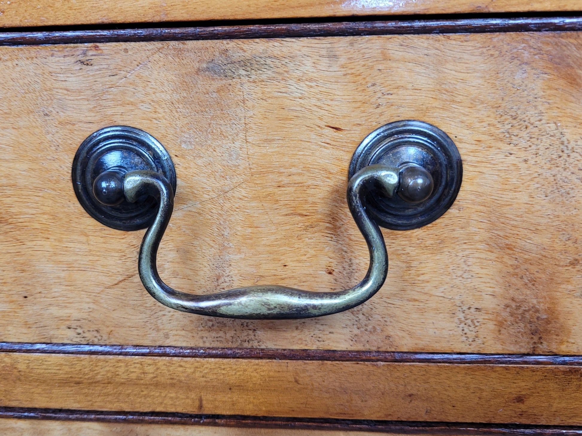 All the drawers have gorgeous swan metal figured drop handles, a wonderful finish to this chest of drawers.
