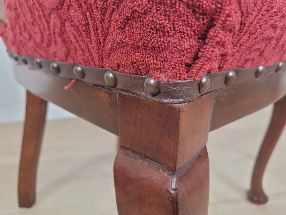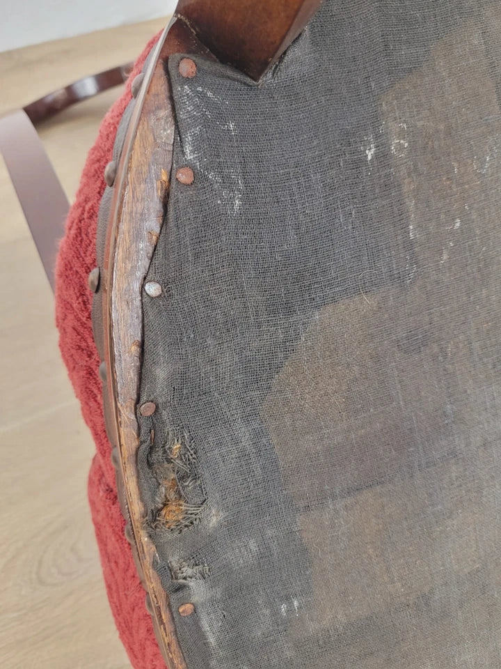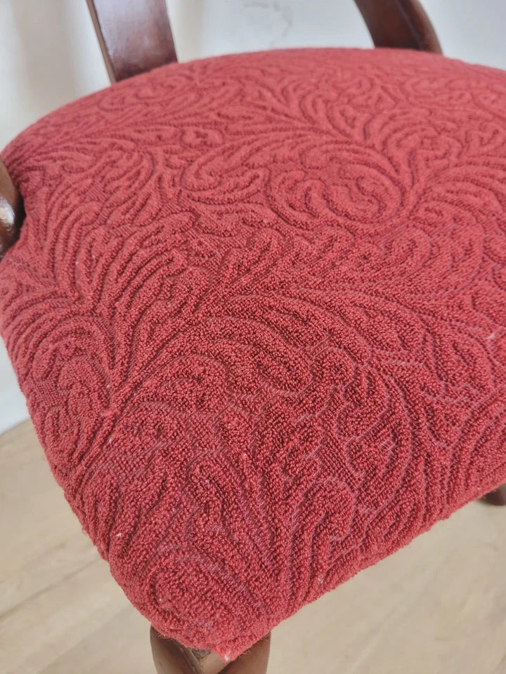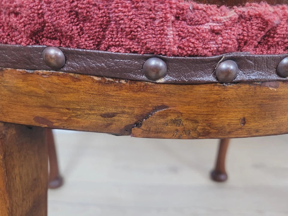 All of the seats have comfortable sprung seats, with a chenille floral red upholstered design to the seats. Surrounding the seats is a gorgeous studded leather boarder.