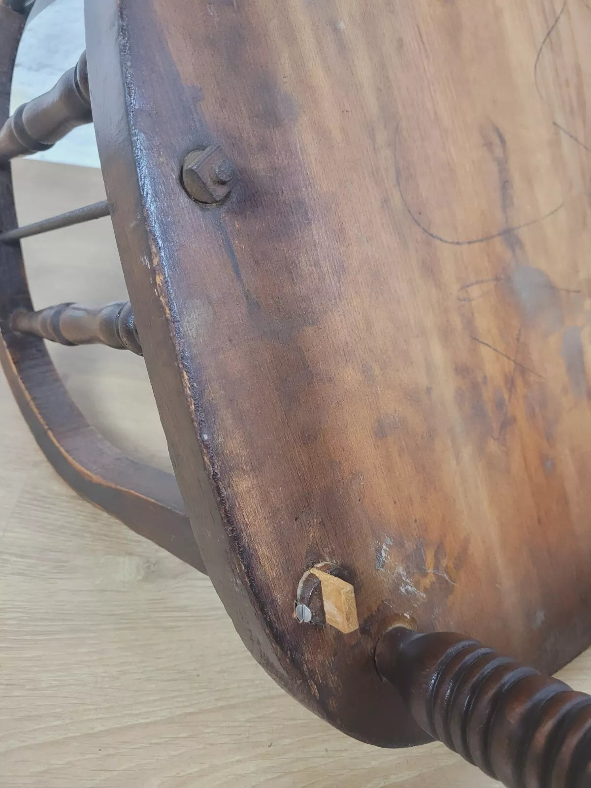 There has been an additional wooden piece added to the underside of the armrest to keep it in place, doesn't affect the functionality at all (see photograph).