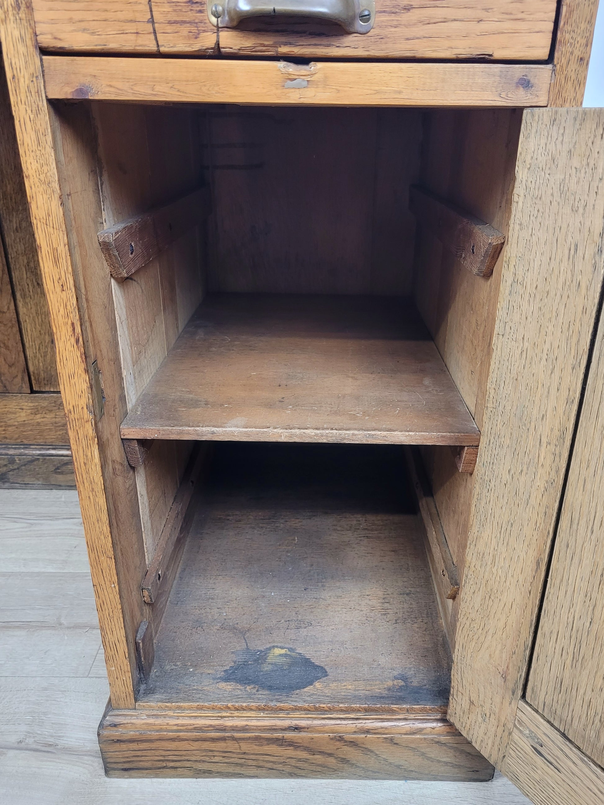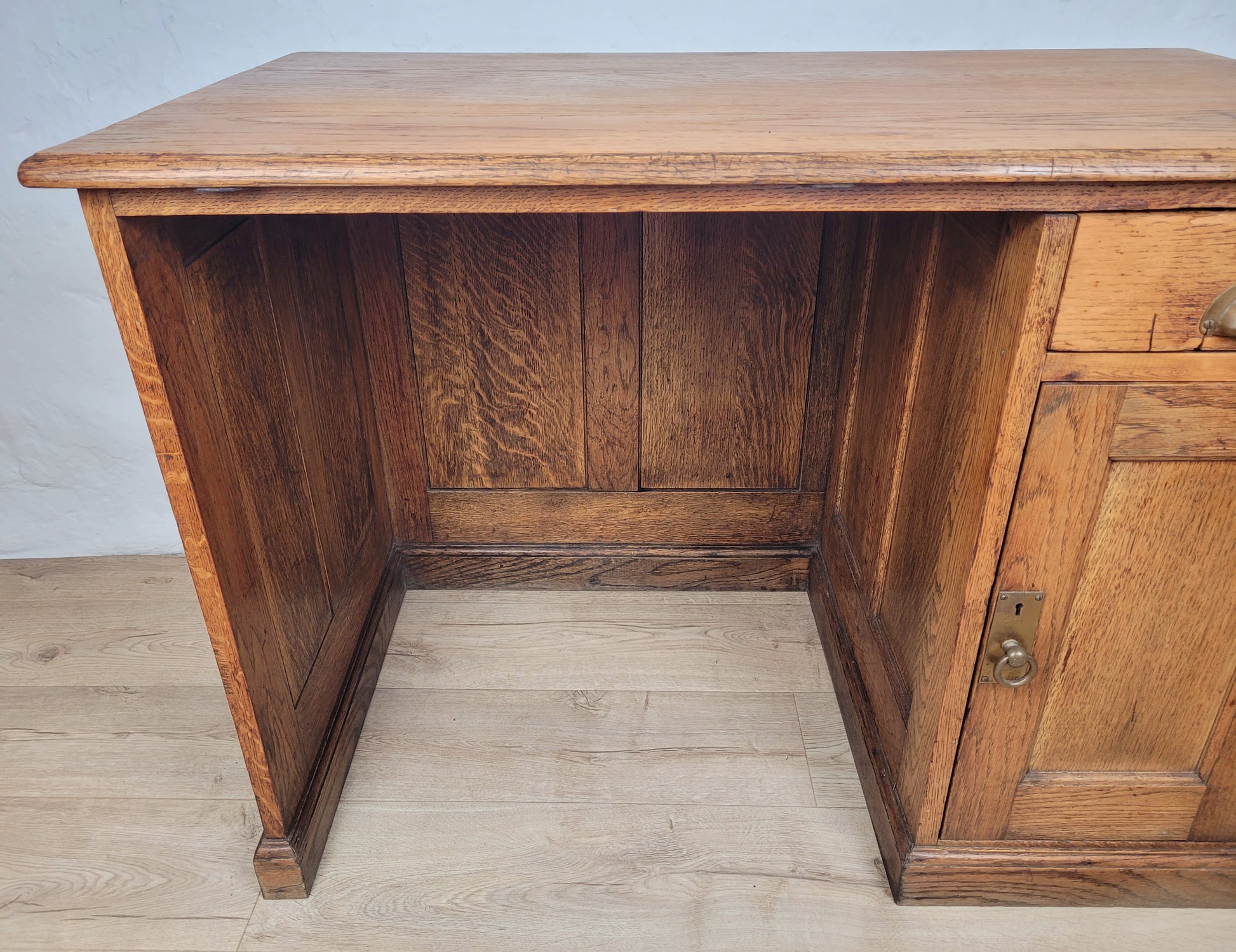 With a large rectangular writing desk that displays a rich Oak patination.
