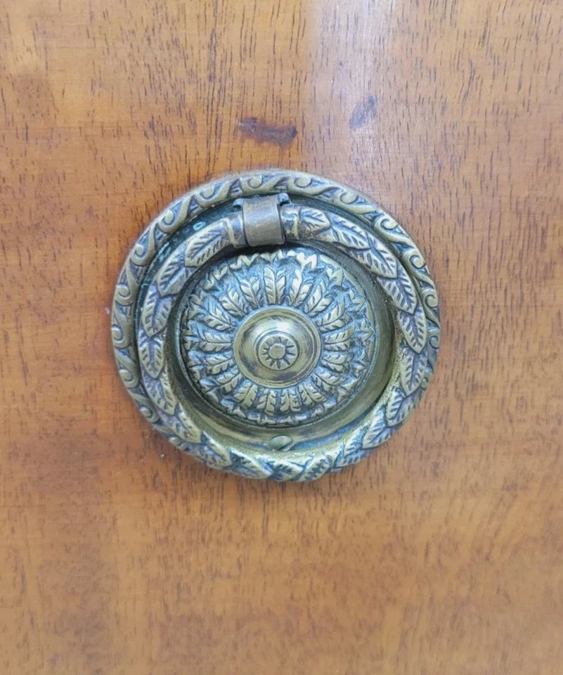 With three large graduating lower drawers with raised boarders, and matching intricate foliage circular drop handles.