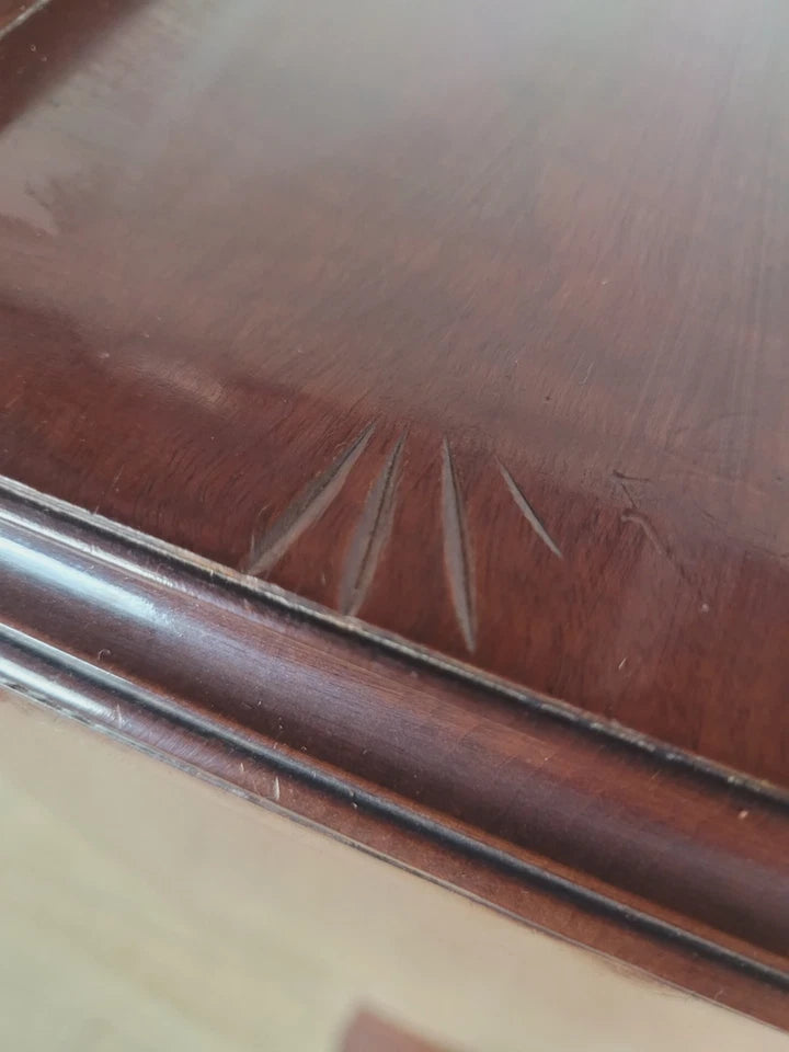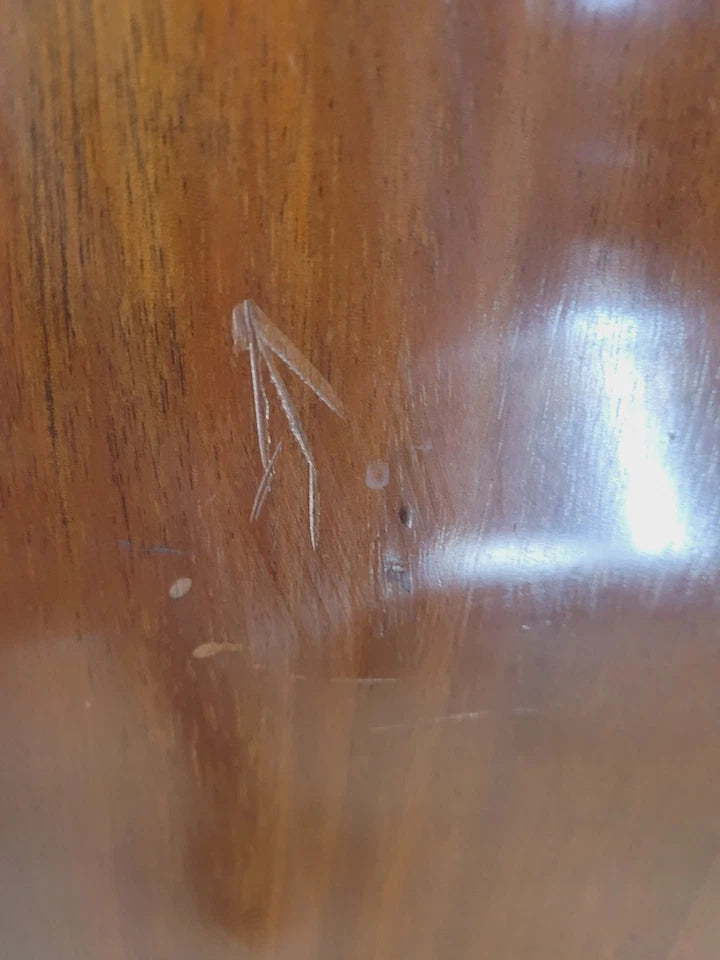 There is a hairline crack to the interior, a scratch to the bottom drawer and left side, but these have no structural affect (see photographs).
