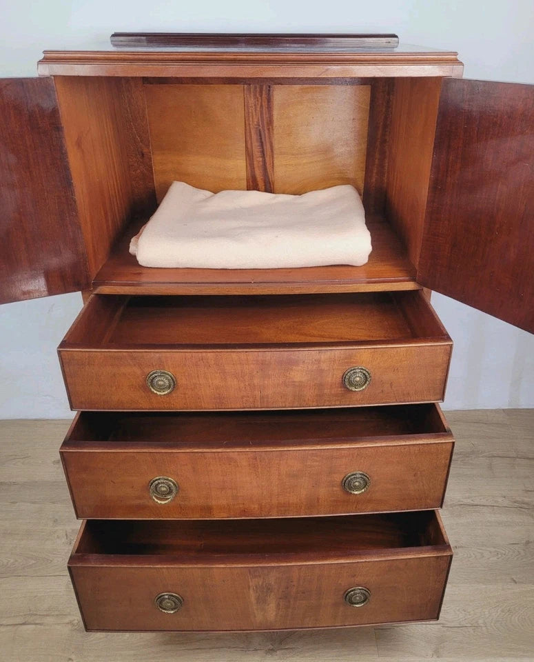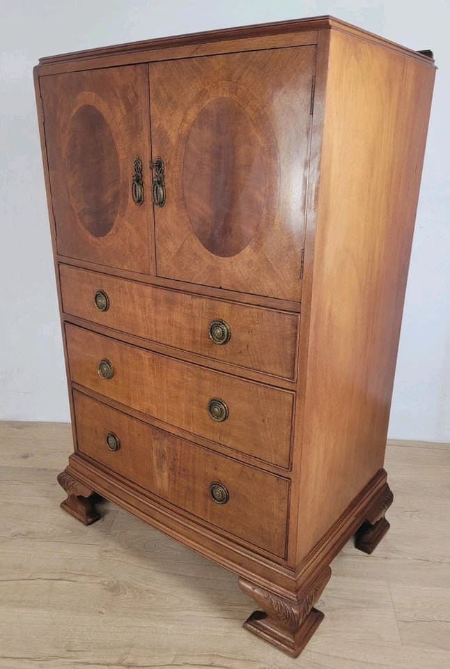 Vintage Walnut Dresser Cabinet Tallboy Linen Art Deco 1930s Delivery Available