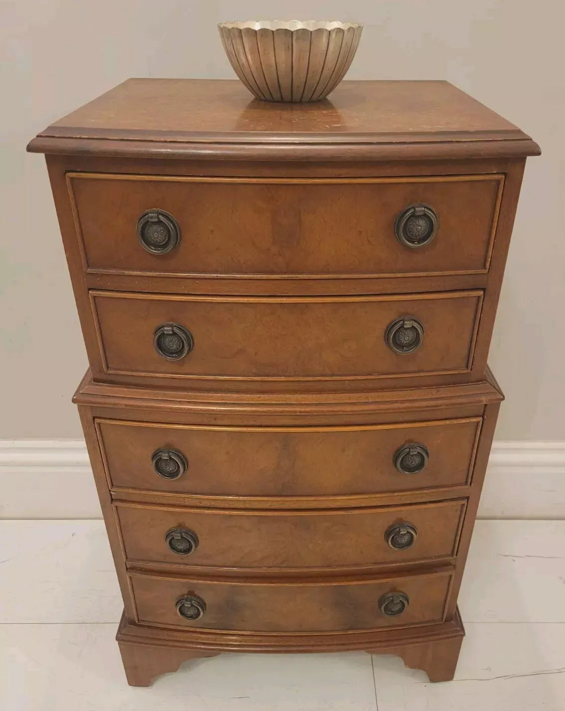 This beautiful walnut chest of drawers adds a warm vintage style character and charm to many living, or bedroom home settings.