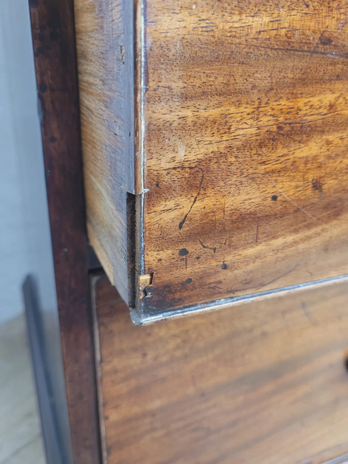 Overall this antique chest of drawers has signs of use, scratches, veneer wear and markings as to be expected from a item of this age (see photographs).