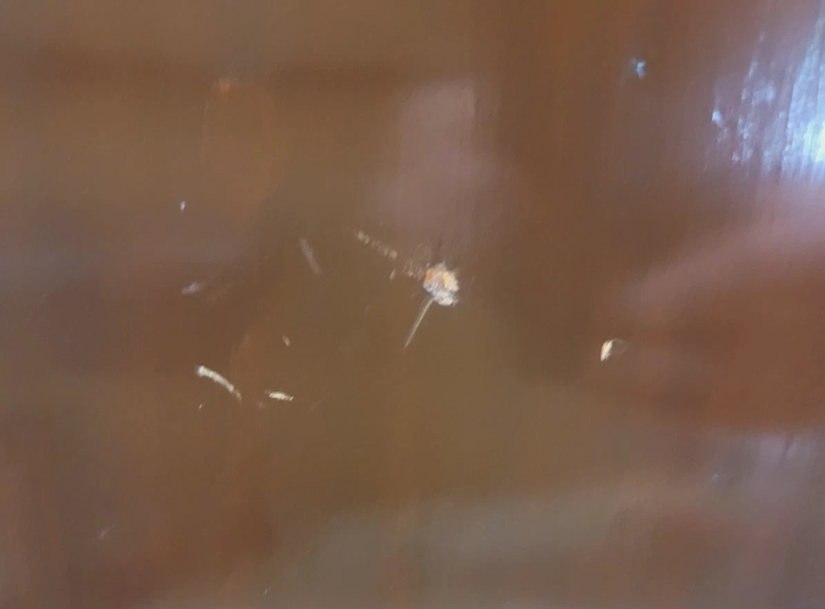 There is a bit of veneer missing to one of the drawer front (see photograph).