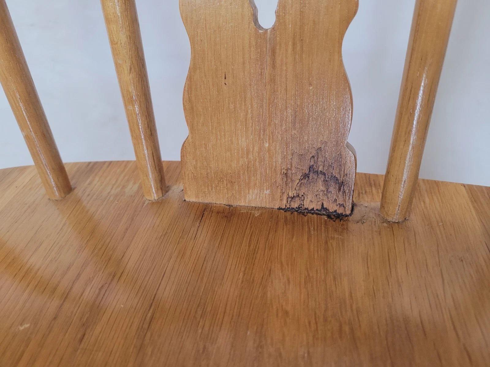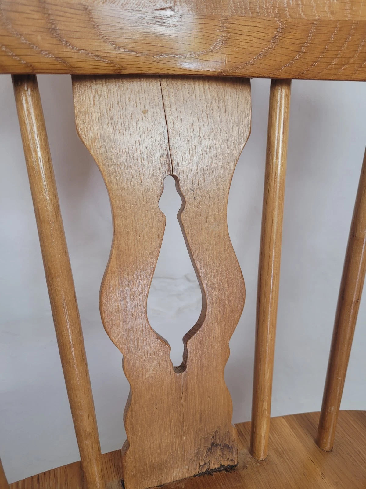These armchairs are timeless pieces from the mid-century, a classic oak finish they offer a touch of rustic charm to your living, kitchen, or dining room setting.