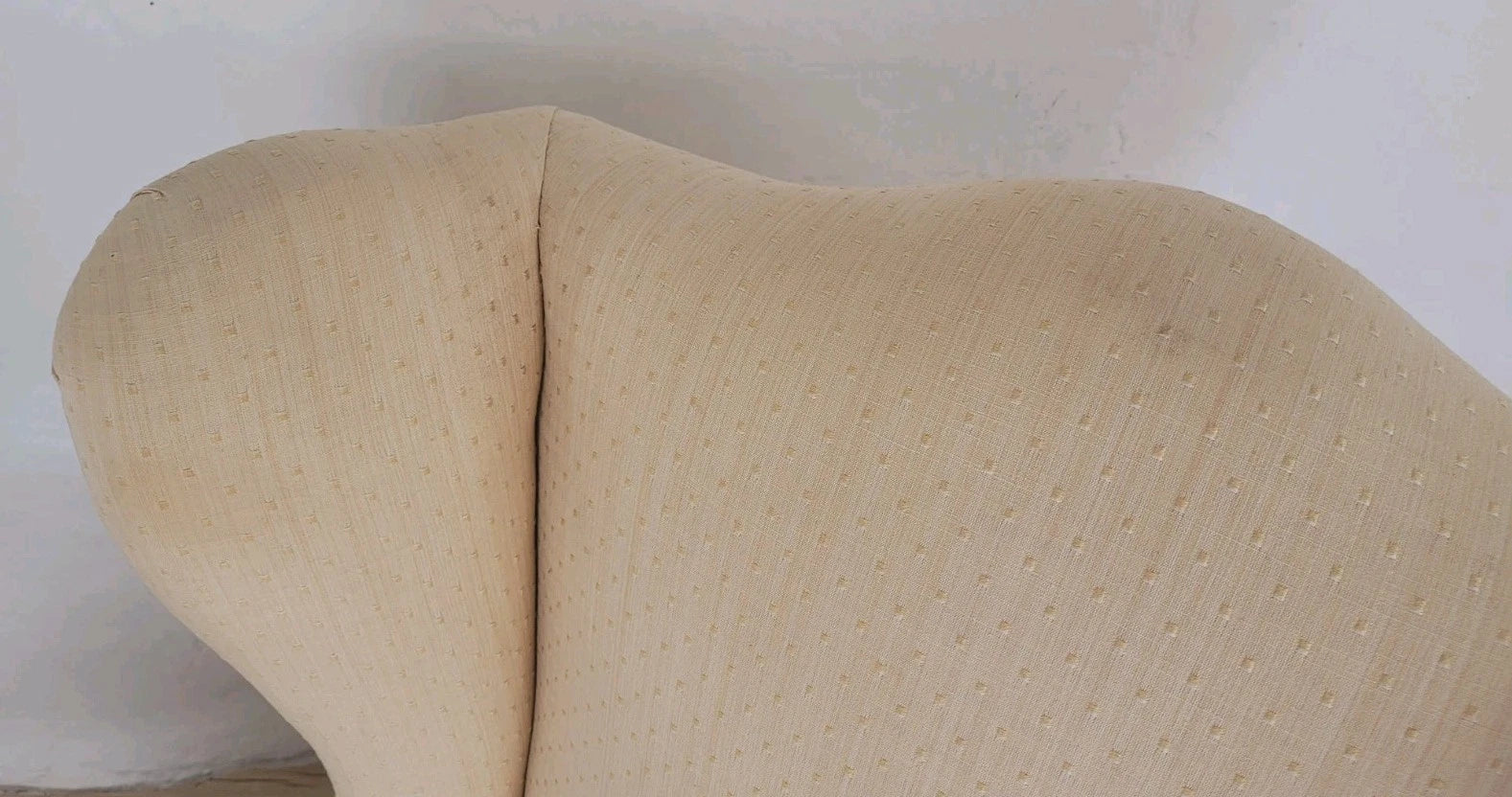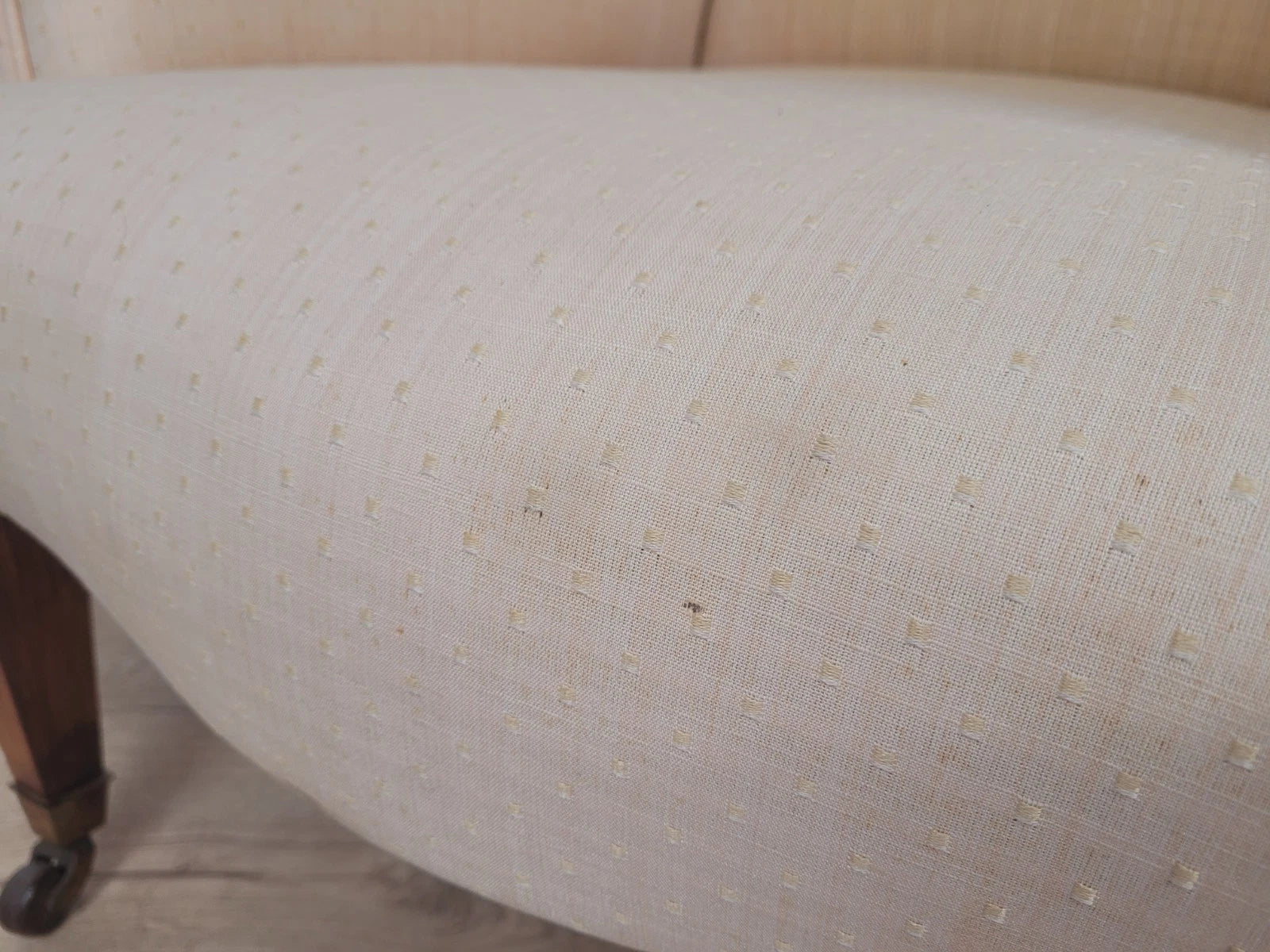 The chair has been previously upholstered in this pale Apricot chenille.
