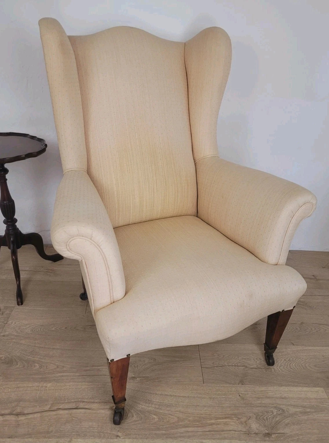 Winged Armchair George III Style Apricot Upholstery Castors Delivery Available
