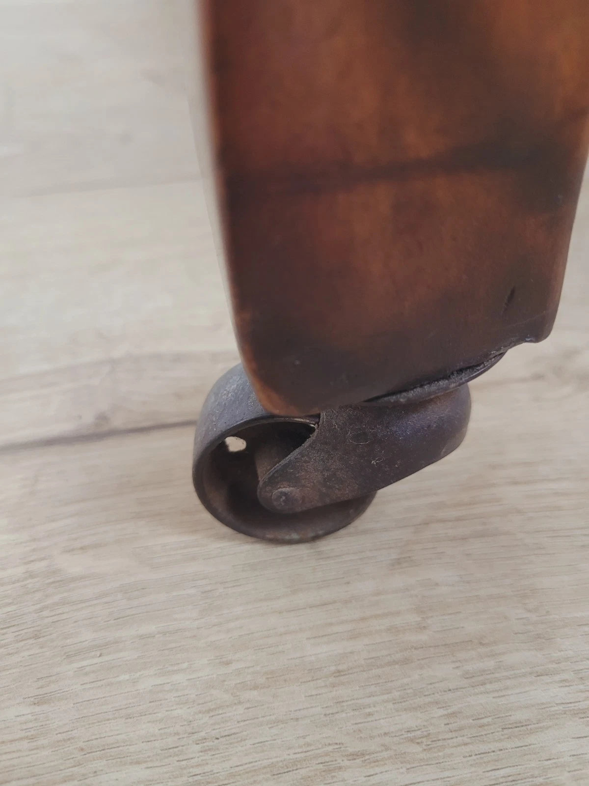 The back left rolling castor has been replaced by a metal castor.