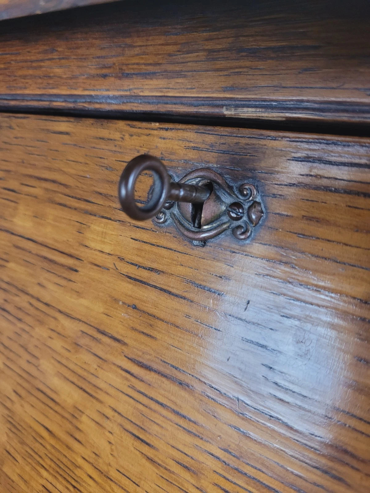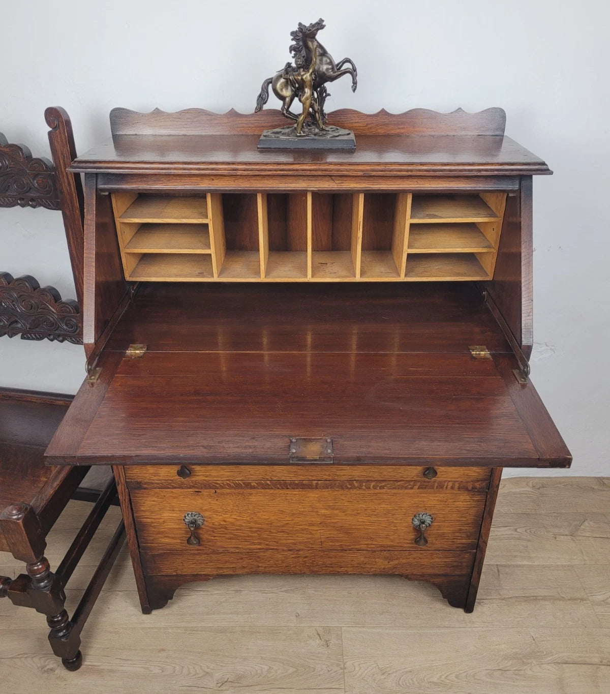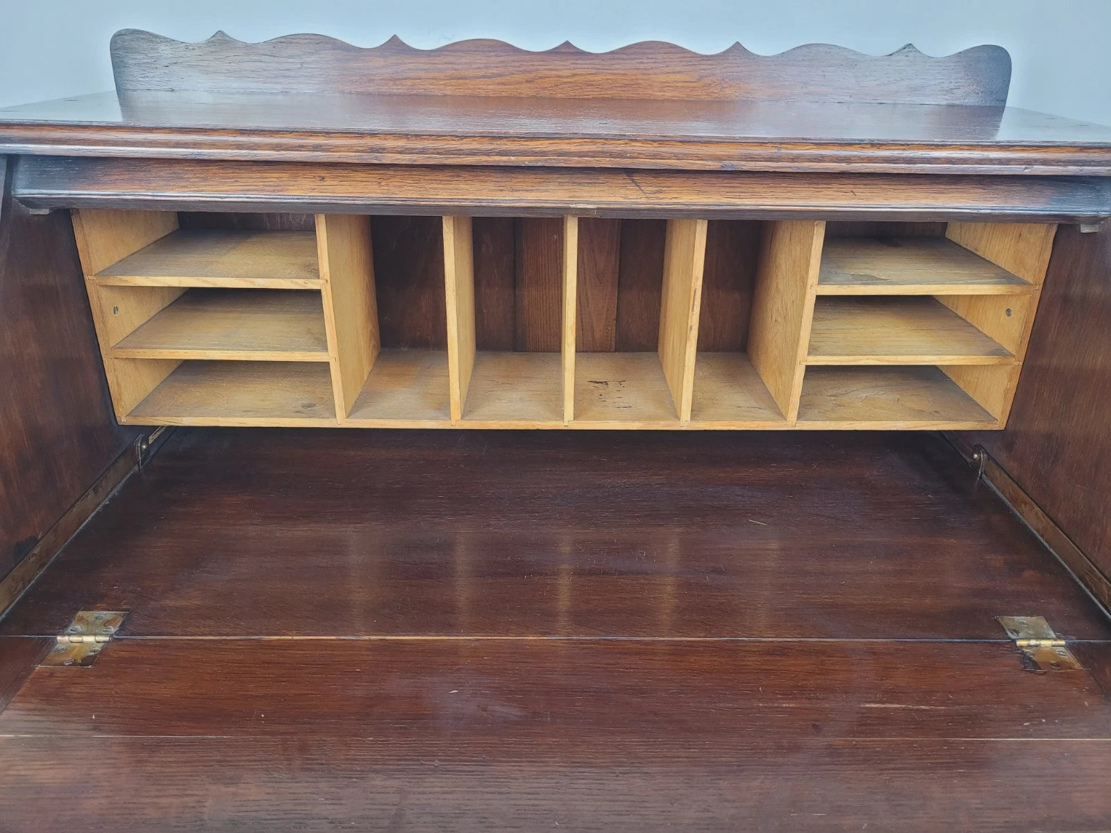 The bureau front displays a rich, warm oak patination that is sure to add a wonderful country charm to the home decor.